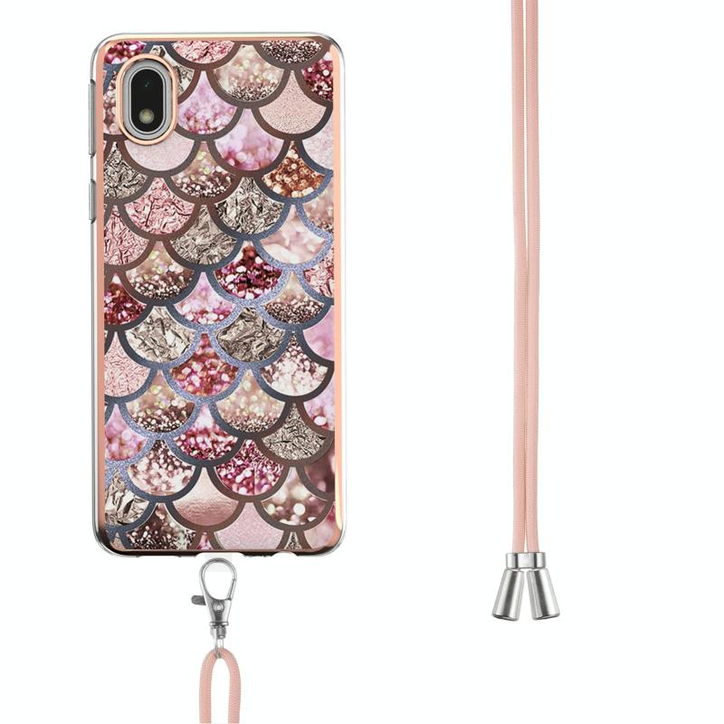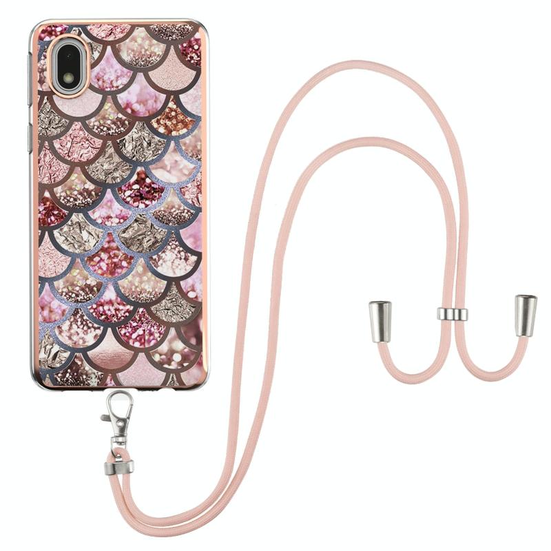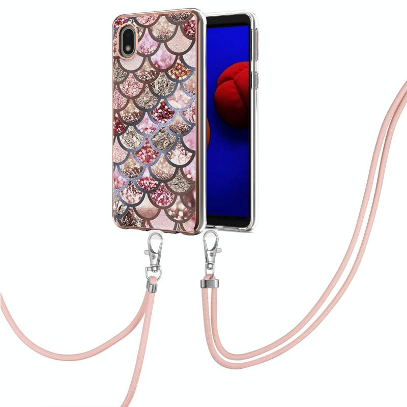 For Samsung Galaxy A01 Core Electroplating Pattern IMD TPU Shockproof Case with Neck Lanyard(Pink Scales)