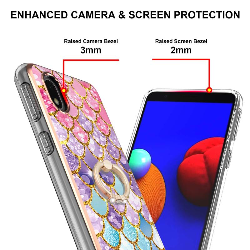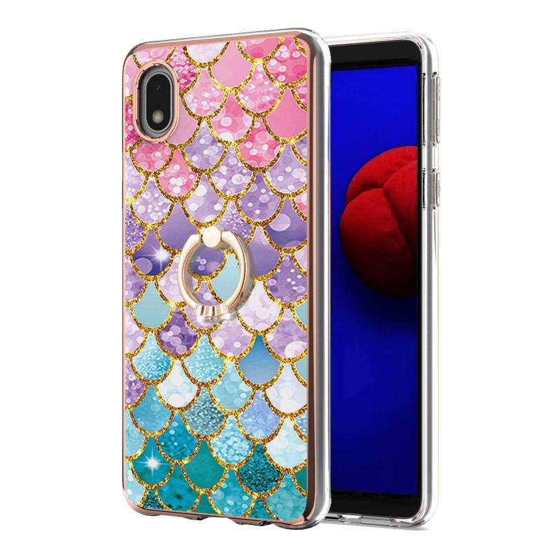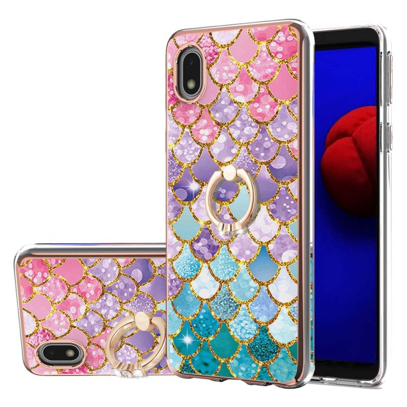 For Samsung Galaxy A01 Core Electroplating Pattern IMD TPU Shockproof Case with Rhinestone Ring Holder(Colorful Scales)