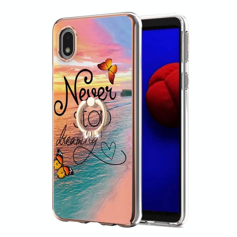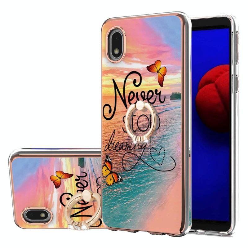 For Samsung Galaxy A01 Core Electroplating Pattern IMD TPU Shockproof Case with Rhinestone Ring Holder(Dream Chasing Butterfly)