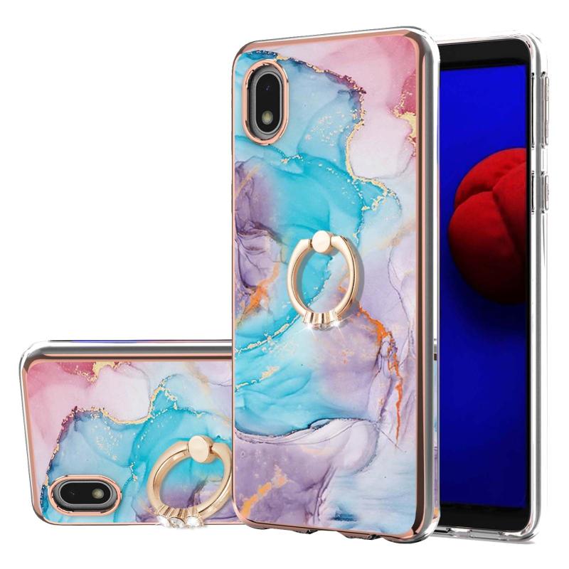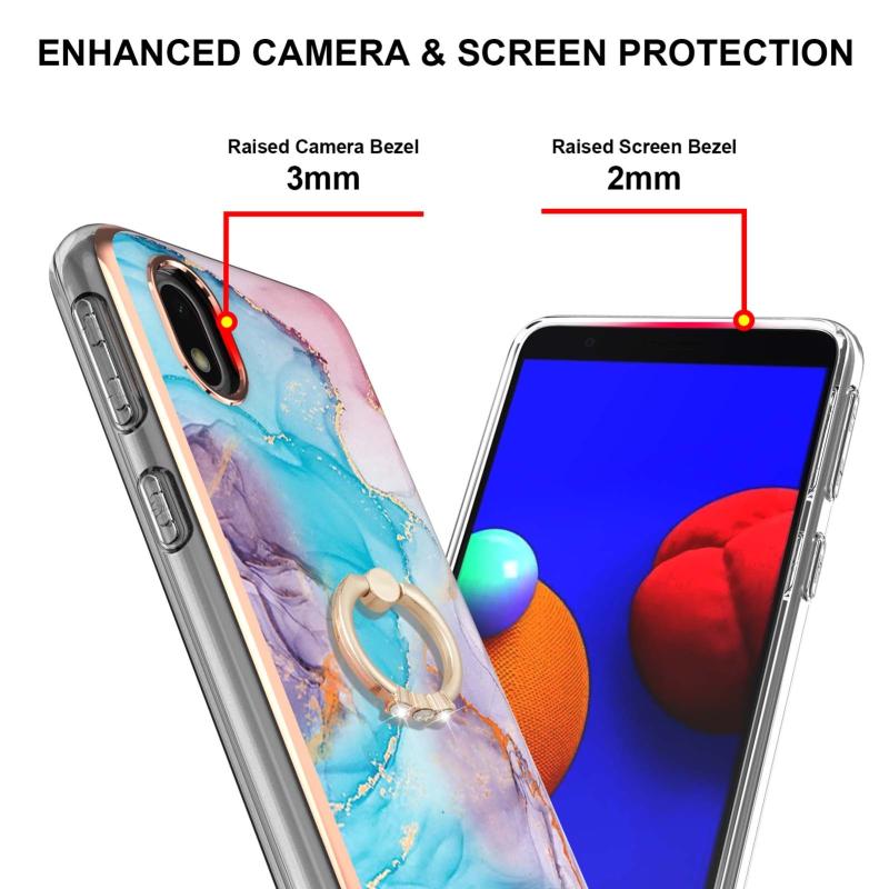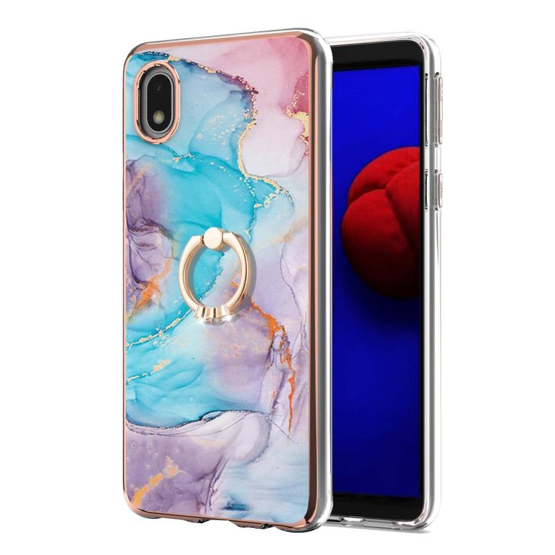 Θήκη για Samsung Galaxy A01 Core με Γαλβανισμένο Σχέδιο IMD, TPU ανθεκτική στις κρούσεις με Δαχτυλίδι Στήριξης και Ρητίνες (Μωβ Λουλούδι)
