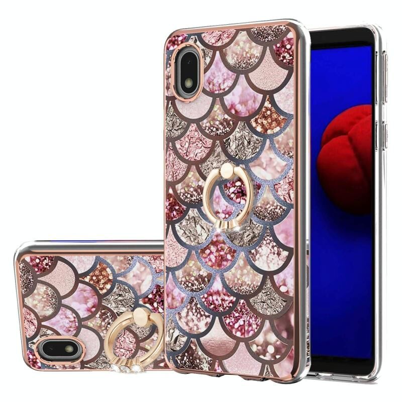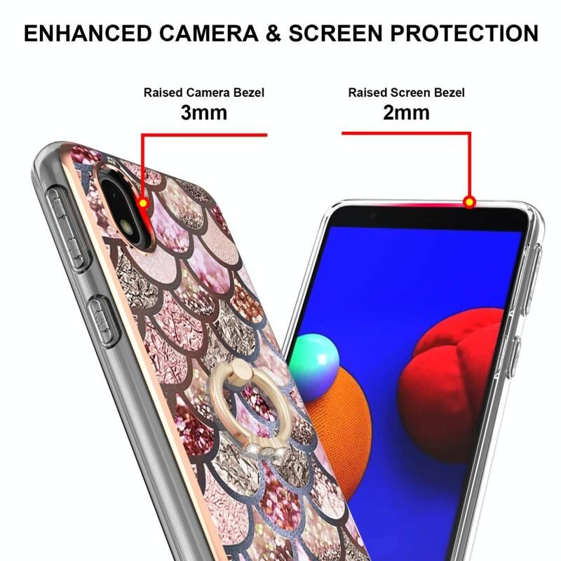 Θήκη για Samsung Galaxy A01 Core με Γαλβανισμό, Μοτίβο IMD, Αντικραδασμική από TPU με Δαχτυλίδι Στήριξης και Ρητίνες (Λευκό Μάρμαρο Γαλαξία)