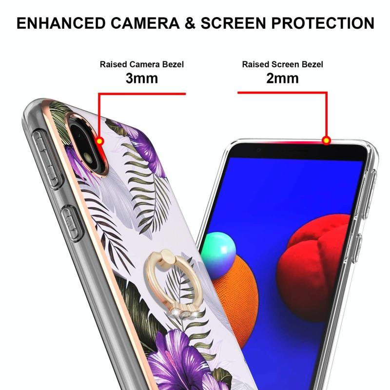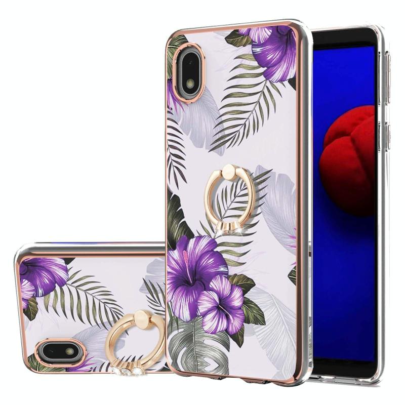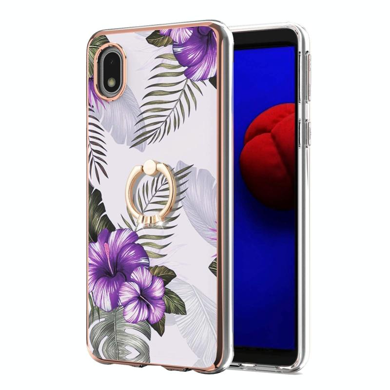 Θήκη για Samsung Galaxy A01 Core με Γαλβανισμένο Σχέδιο IMD, TPU ανθεκτική στις κρούσεις με Δαχτυλίδι Στήριξης και Ρητίνες (Μωβ Λουλούδι)