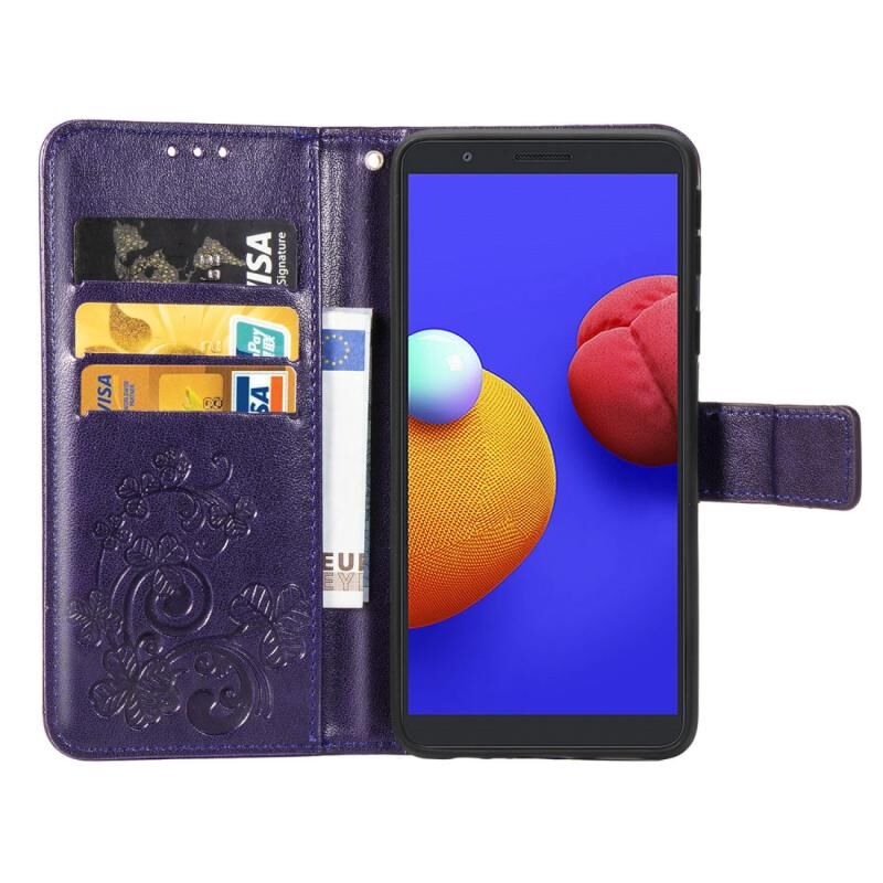 Θήκη δερμάτινη για Samsung Galaxy A01 Core με σχέδιο τριφυλλιού, ανάγλυφο κούμπωμα, προστασία κινητού, λουρί, θήκη για κάρτες, πορτοφόλι και στήριξη (Χρυσό ροζ)