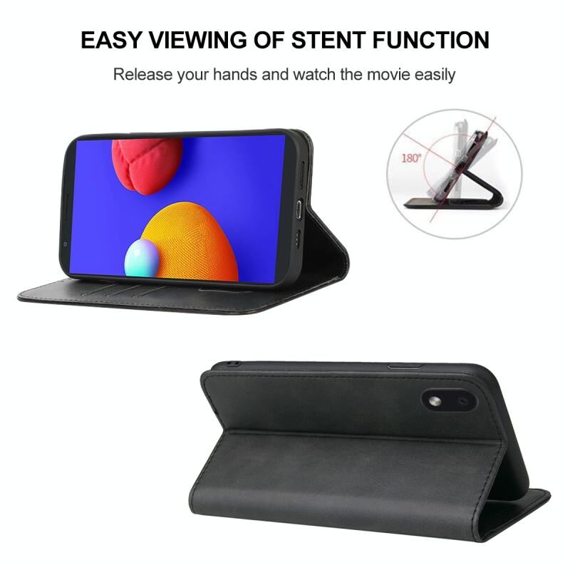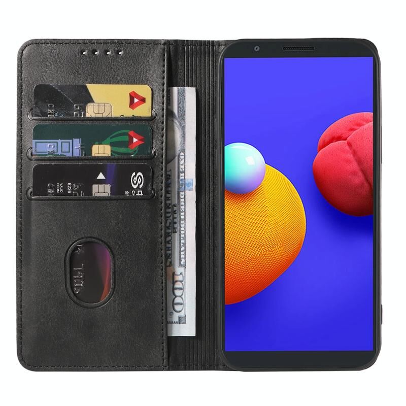 Για Samsung Galaxy A01 Core / M01 Core Μαγνητικό κλείσιμο δερμάτινη θήκη τηλεφώνου (μαύρο)