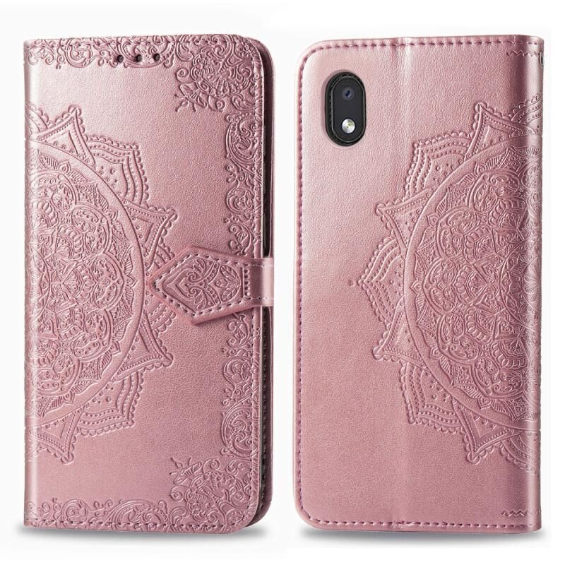 Θήκη Samsung Galaxy A01 Core, δερμάτινη οριζόντια, με ανάγλυφο σχέδιο Mandala, βάση στήριξης / θήκη καρτών / πορτοφόλι / κορδόνι (Μπλε)