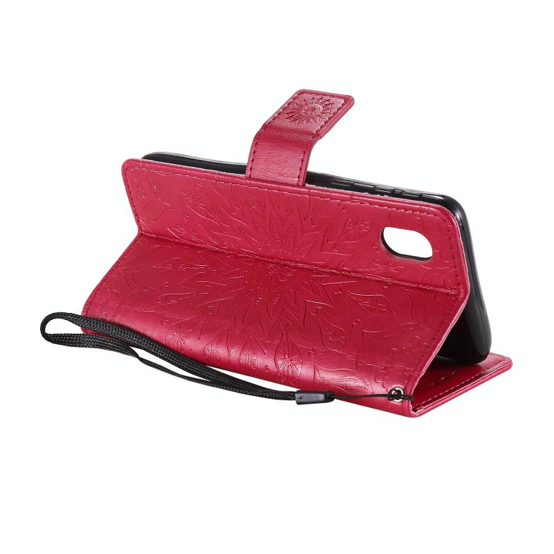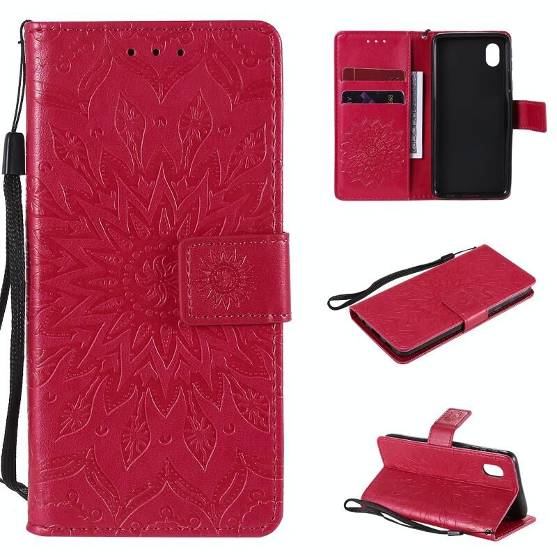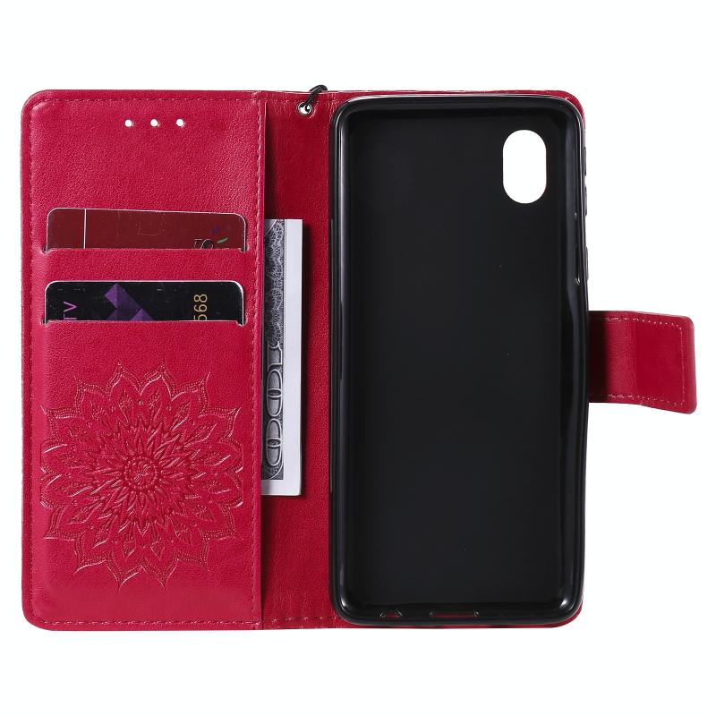 Θήκη Samsung Galaxy A01 Core, με εκτύπωση ηλιοτροπίου, οριζόντια, από δερματίνη PU, με βάση στήριξης, θήκες για κάρτες, πορτοφόλι & λουρί (Χρυσό Ρόδινο).