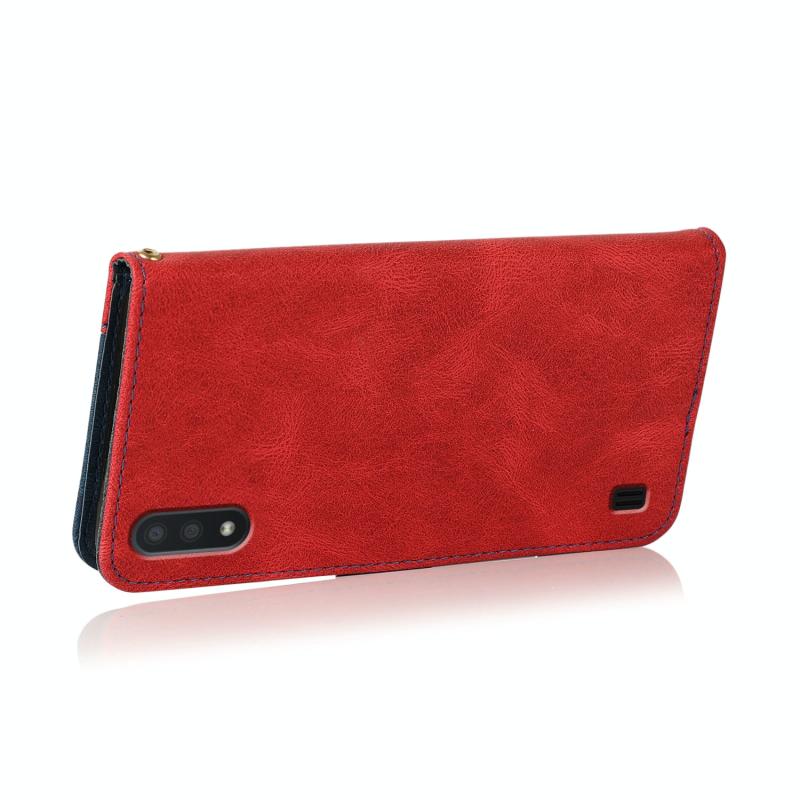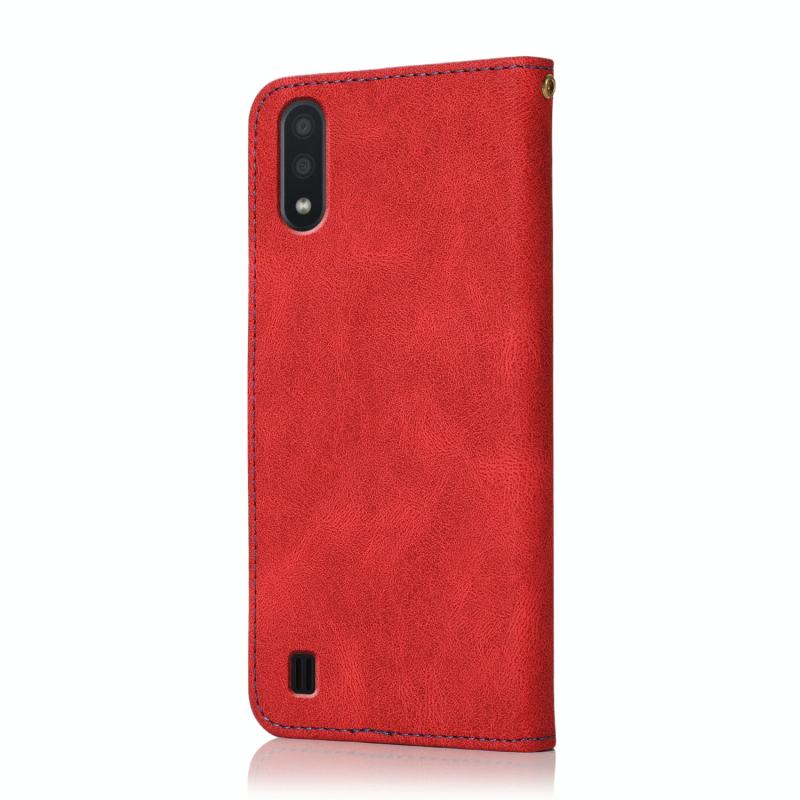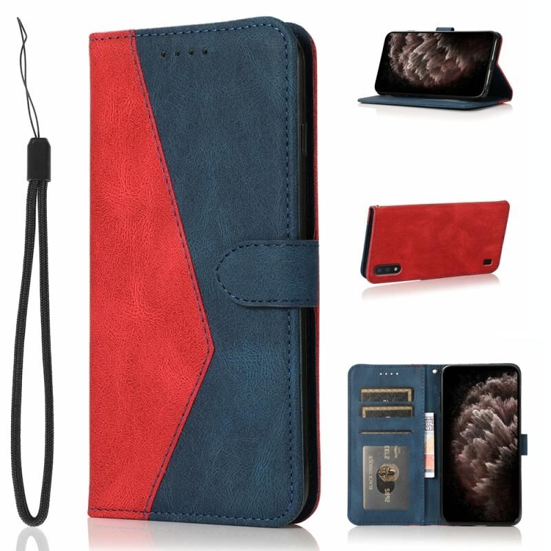 Θήκη τηλεφώνου Samsung Galaxy A01 Δερμάτινη με ραφές σε δύο χρώματα (Κόκκινο Μπλε)