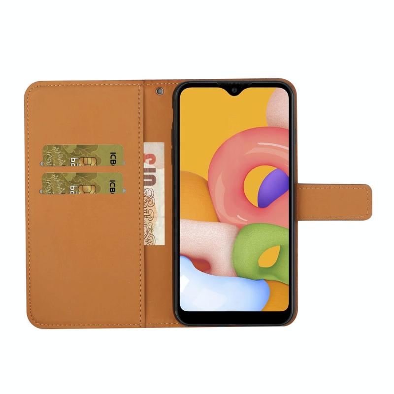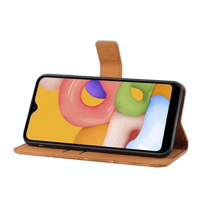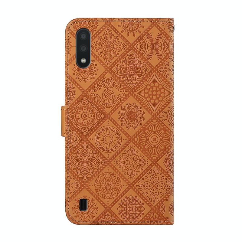 Θήκη Samsung Galaxy A01 Εθνοτικό Στυλ, ανάγλυφο σχέδιο, οριζόντια, δερμάτινη με βάση & θήκες καρτών & πορτοφόλι & κορδόνι (Καφέ)