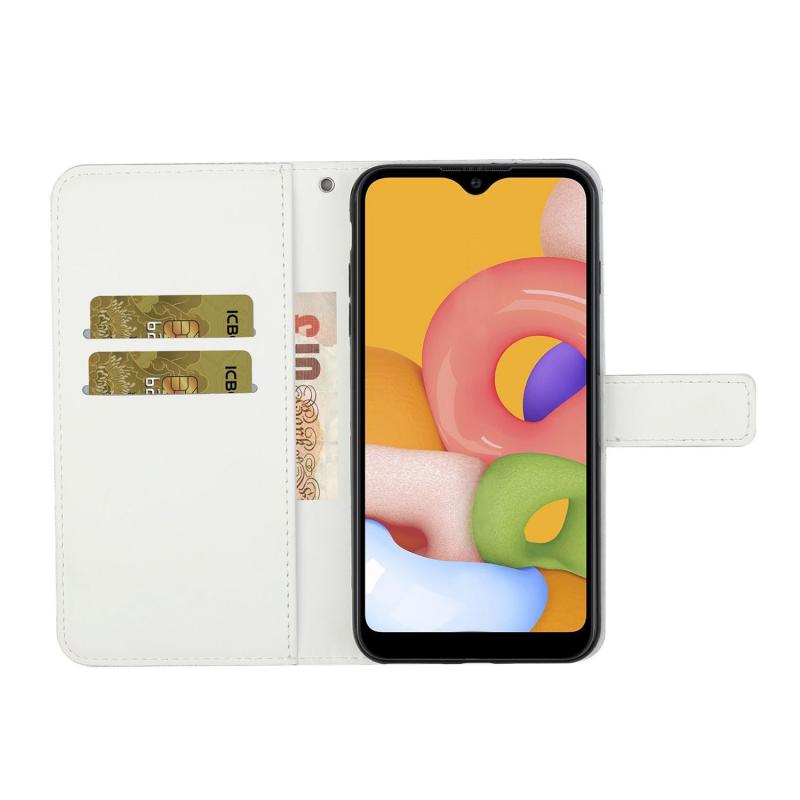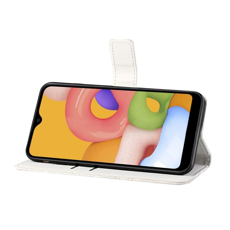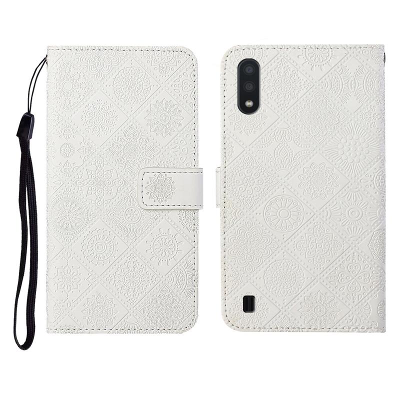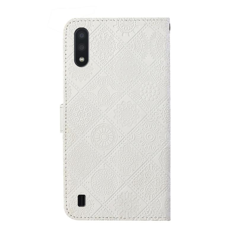 Θήκη Samsung Galaxy A01 Εθνοτικό Στυλ, ανάγλυφο σχέδιο, οριζόντια, δερμάτινη με βάση & θήκες καρτών & πορτοφόλι & κορδόνι (Λευκό)