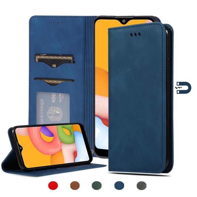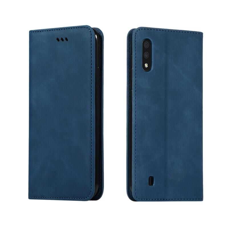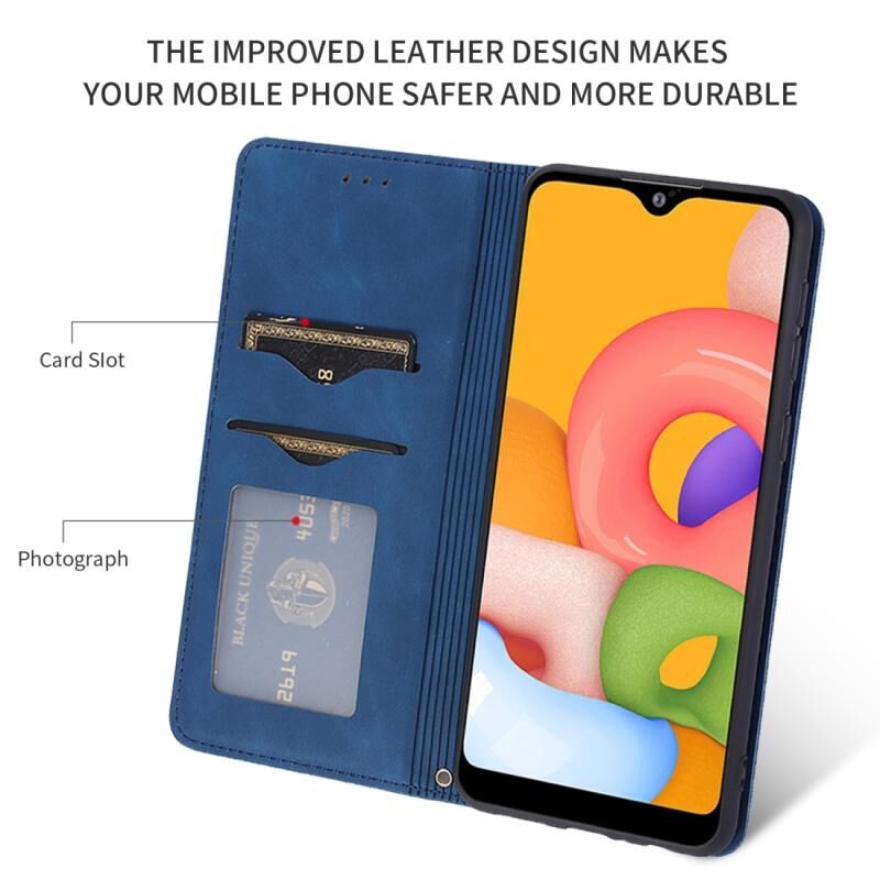 Για το Samsung Galaxy A01 (ΕΕ) Ρετρό δέρμα αισθάνομαι επιχείρηση μαγνητική οριζόντια Flip δερμάτινη θήκη (Navy Blue)