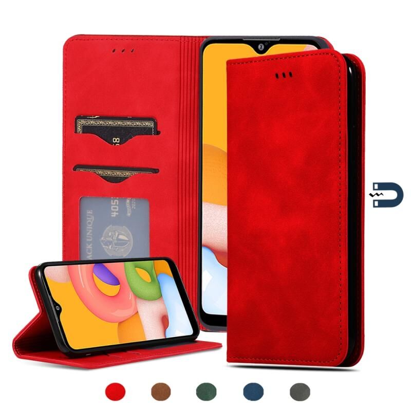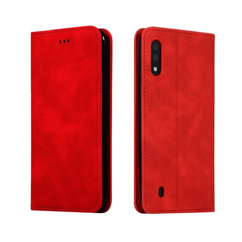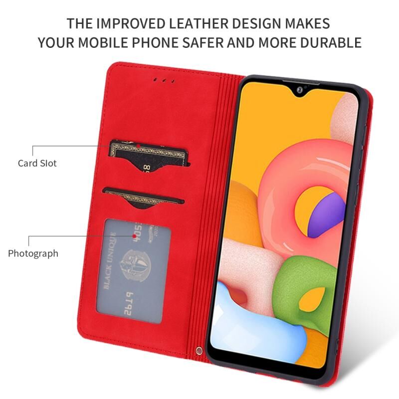 Για το Samsung Galaxy A01 (ΕΕ) Ρετρό δέρμα αισθάνομαι επιχείρηση μαγνητική οριζόντια Flip δερμάτινη θήκη (κόκκινο)