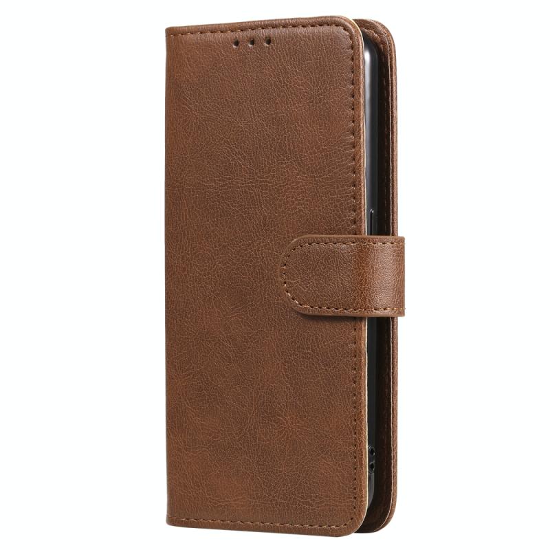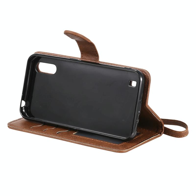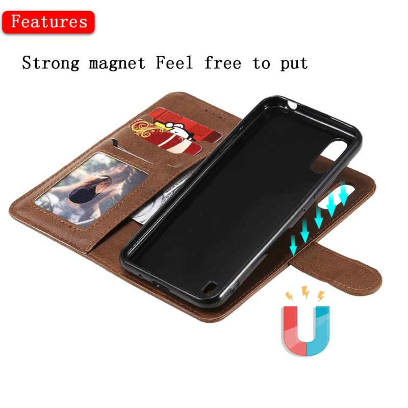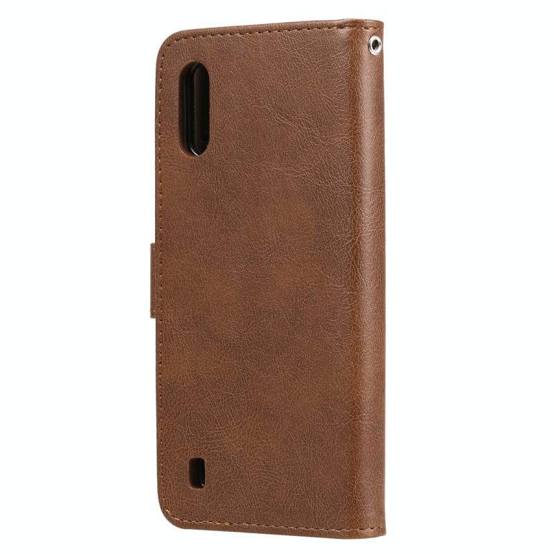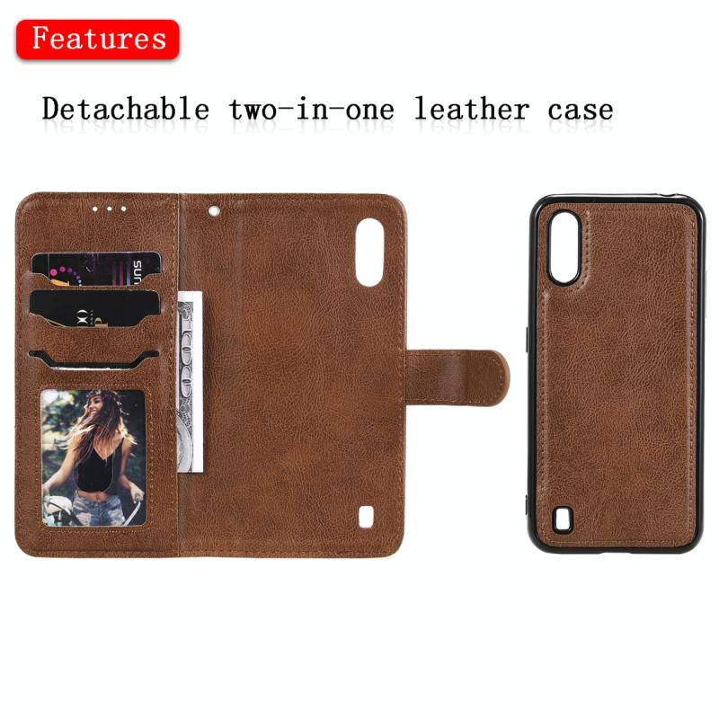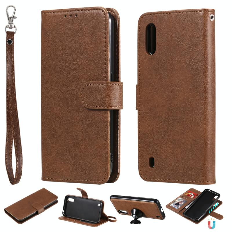 For Samsung Galaxy A01(EU Version) 2 in 1 Solid Color Detachable PU Leather Case with Card Slots & Magnetic Holder & Photo Frame & Wallet & Strap(Brown)