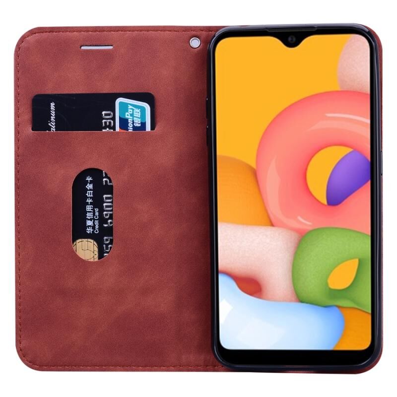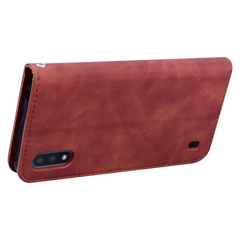 Για Samsung Galaxy A01 Frosted Business μαγνητική οριζόντια Flip PU δέρμα υπόθεση με θήκη & υποδοχή για κάρτες & κορδόνι (καφέ)