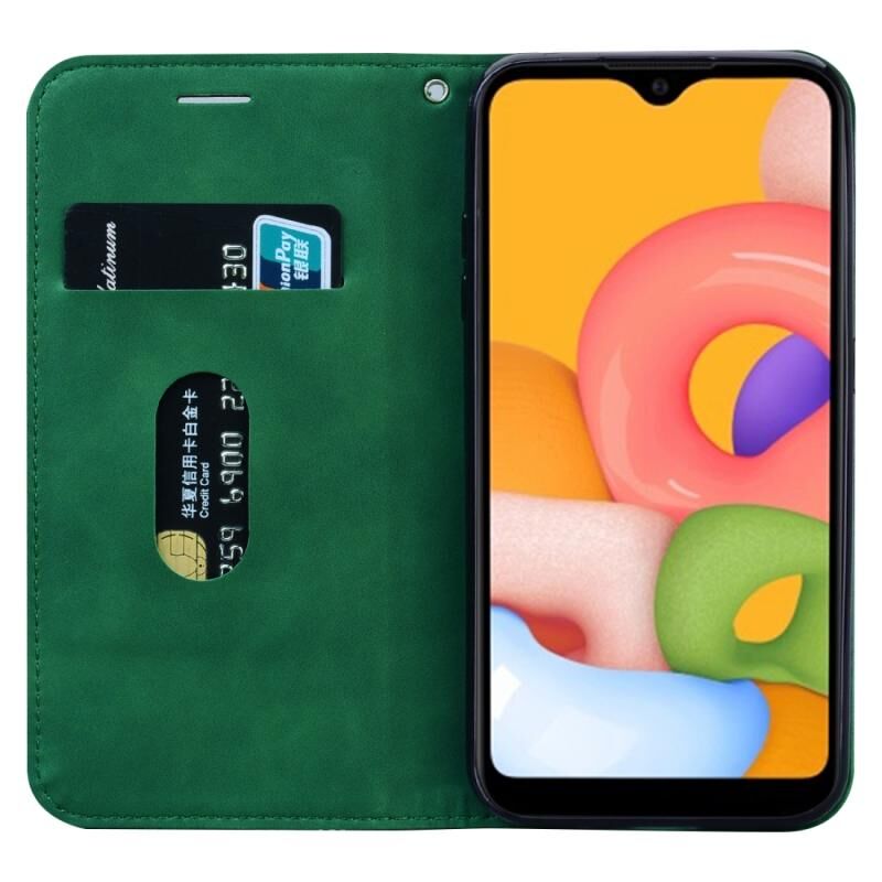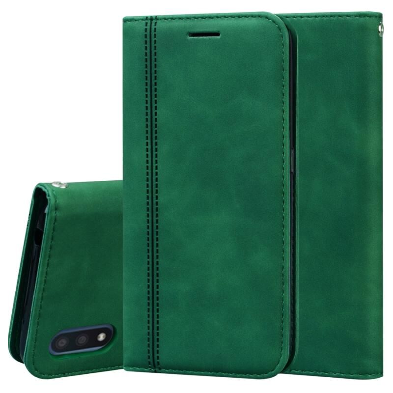 Για Samsung Galaxy A01 Frosted Business μαγνητική οριζόντια Flip PU δέρμα υπόθεση με θήκη & υποδοχή για κάρτες & κορδόνι (πράσινο)