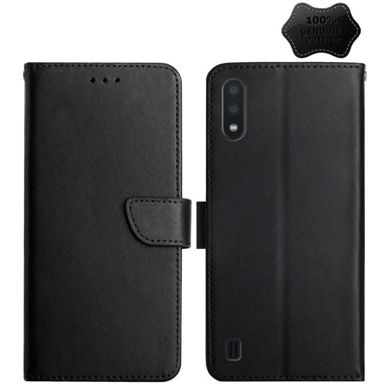 Θήκη Samsung Galaxy A01 από γνήσιο δέρμα, οριζόντια, με μαγνητικό κλείσιμο και προστασία από δακτυλικά αποτυπώματα (Μαύρο)