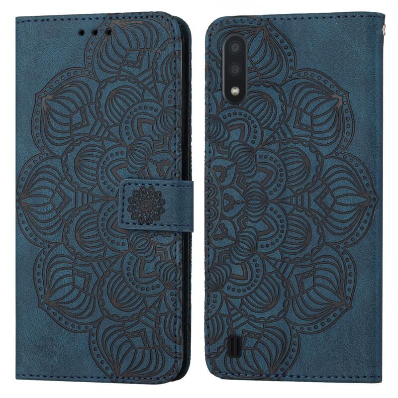 Για Samsung Galaxy A01 Mandala ανάγλυφο Flip υπόθεση τηλεφώνου δέρμα (μπλε)