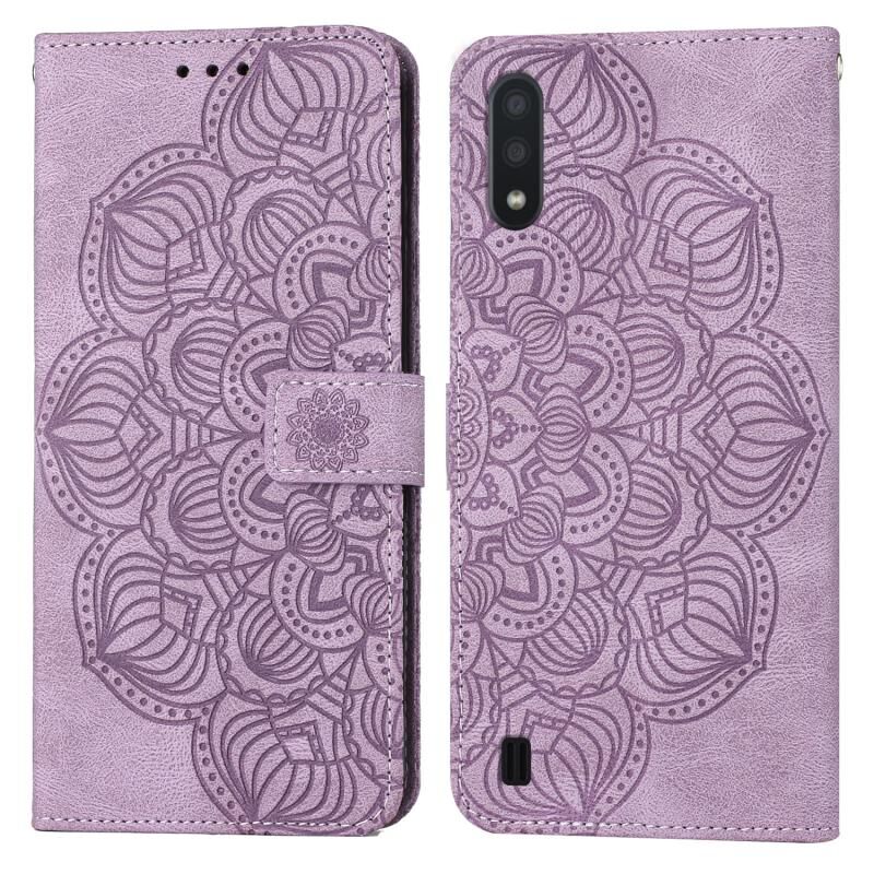 Για Samsung Galaxy A01 Mandala ανάγλυφο Flip υπόθεση τηλεφώνου δέρμα (μωβ)