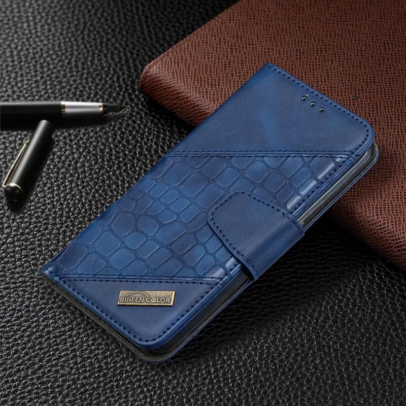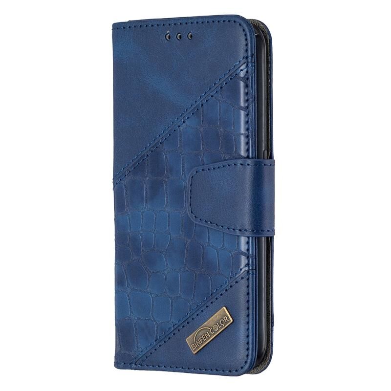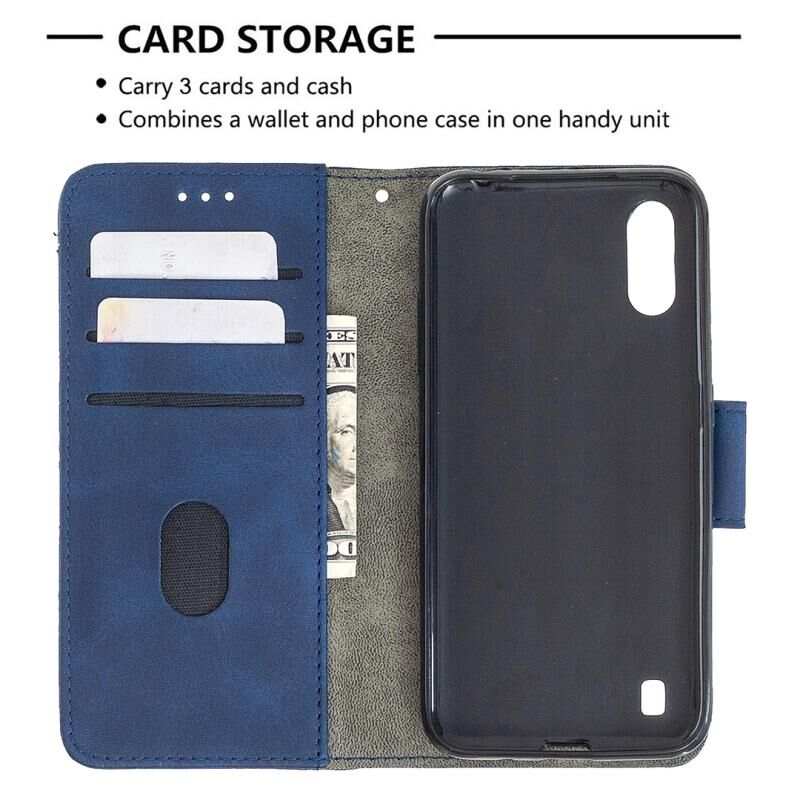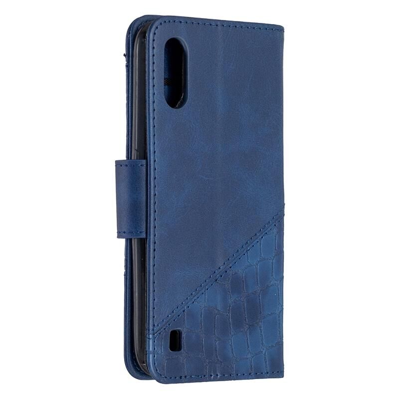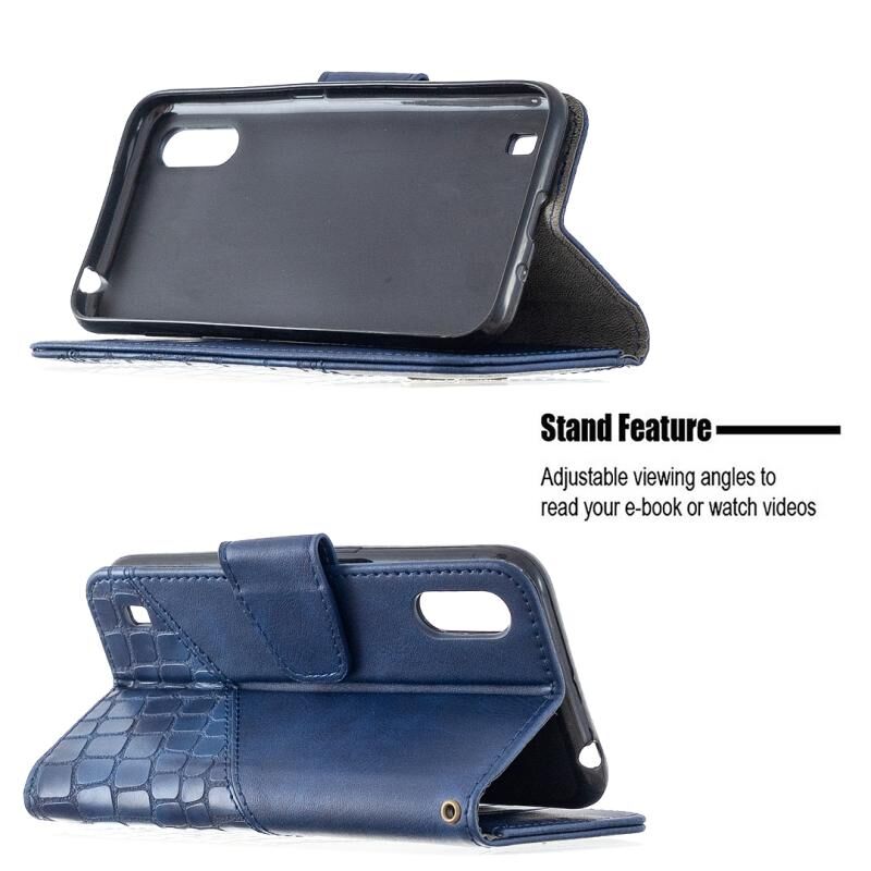 Θήκη Samsung Galaxy A01, Οριζόντια, Δερμάτινη PU με Υφή Κροκόδειλου, σε Αντίστοιχο Χρώμα, με Θήκη Πορτοφολιού, Κάτοχο & Θήκες Καρτών (Μπλε)