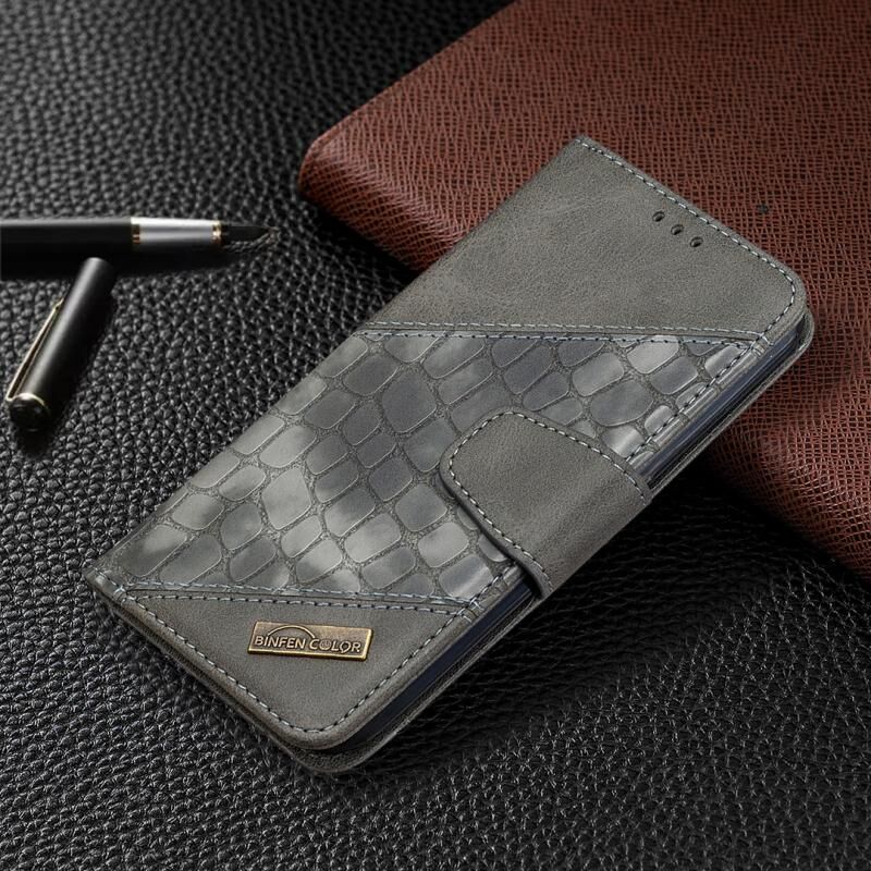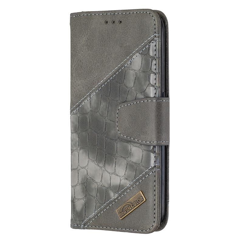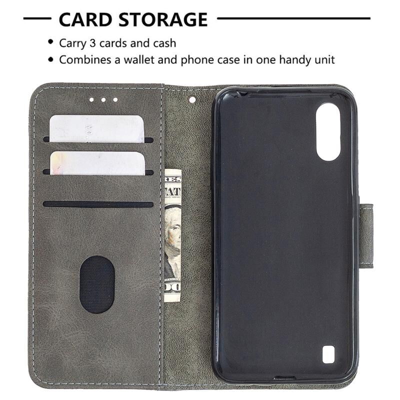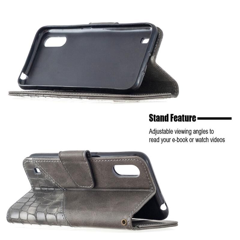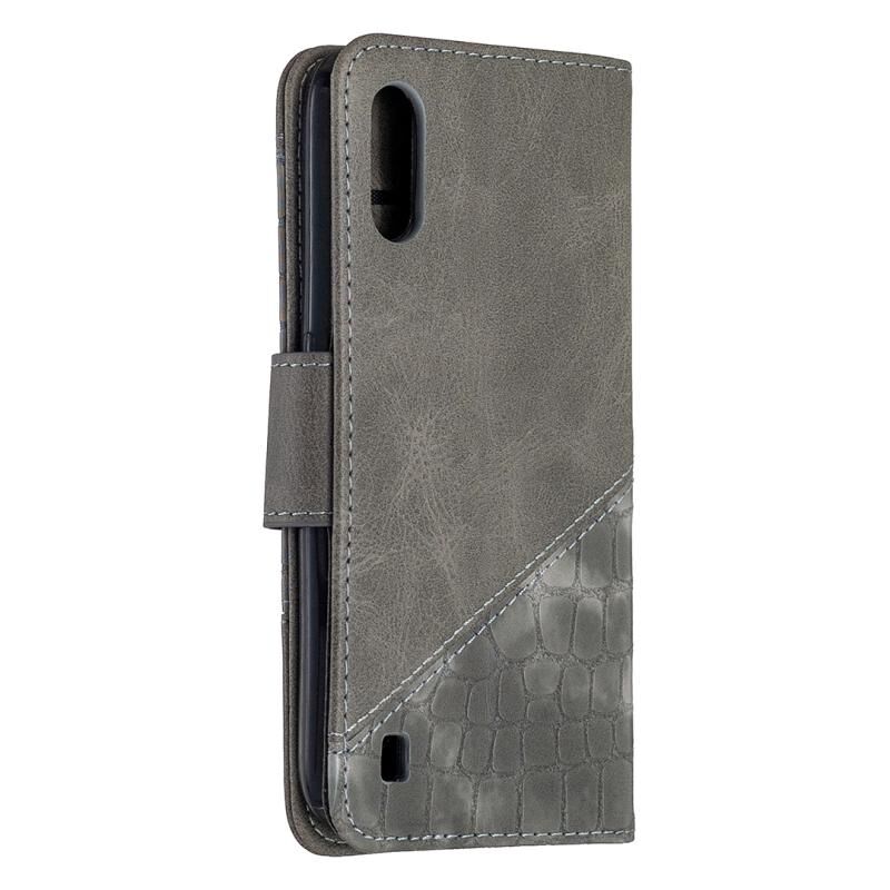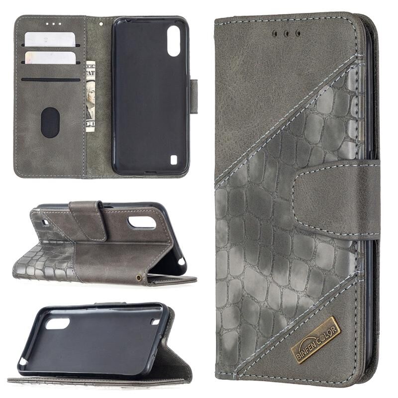 Θήκη Samsung Galaxy A01, Οριζόντια, Δερμάτινη PU με Υφή Κροκόδειλου, σε Αντίστοιχο Χρώμα, με Θήκη Πορτοφολιού, Κάτοχο & Θήκες Καρτών (Γκρι)