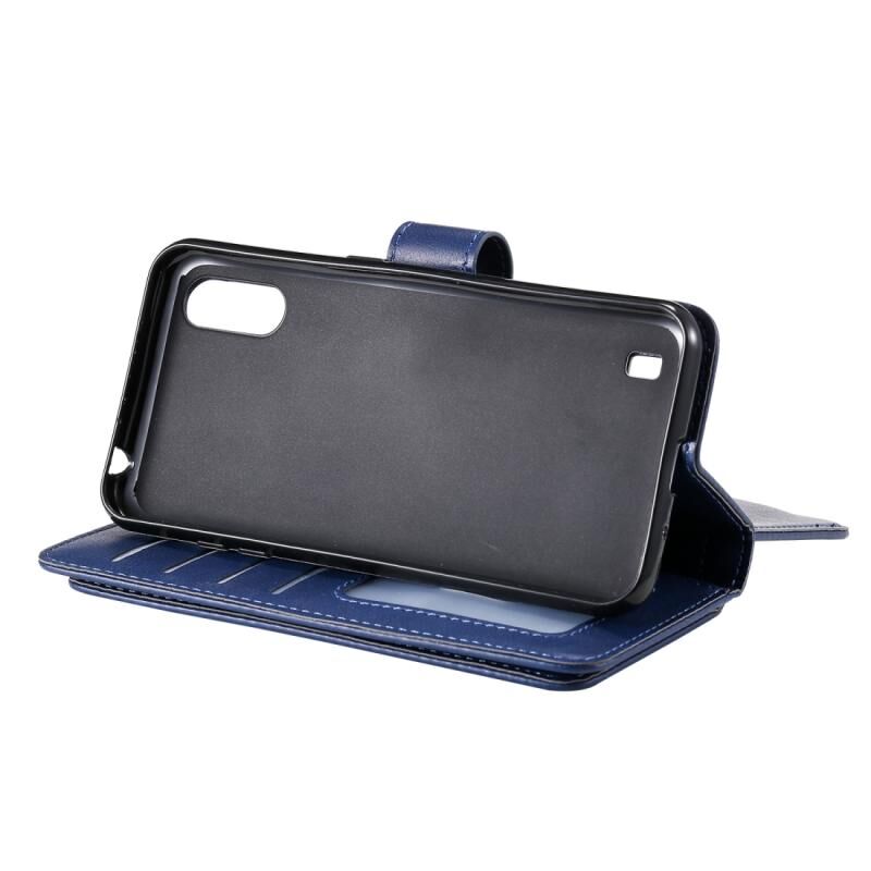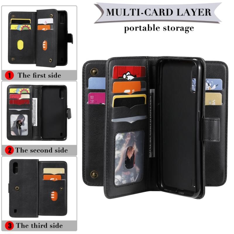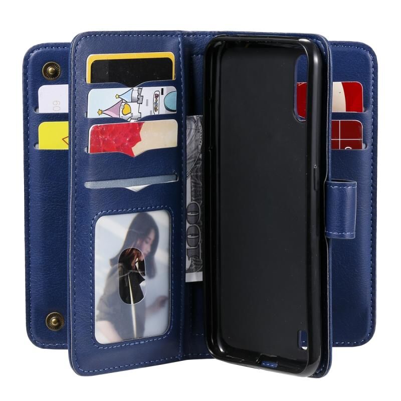 Για Samsung Galaxy A01 Πολυλειτουργική μαγνητική χάλκινη πόρπη οριζόντια Flip αμιγούς χρώματος δερμάτινη θήκη με 10 υποδοχές για κάρτες & πορτοφόλι & θήκη & κορνίζα φωτογραφιών (σκούρο μπλε)
