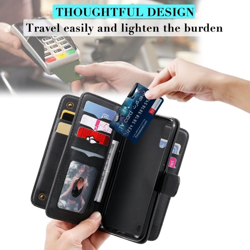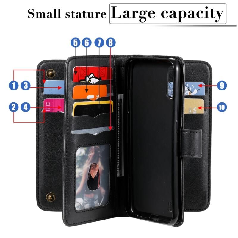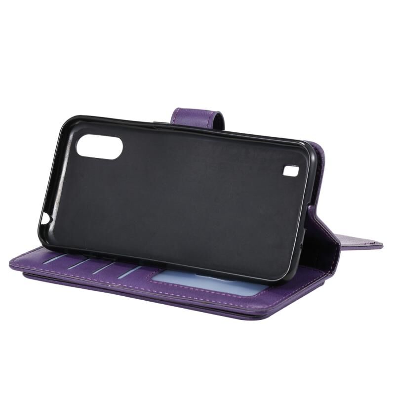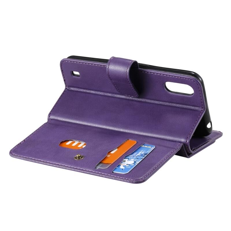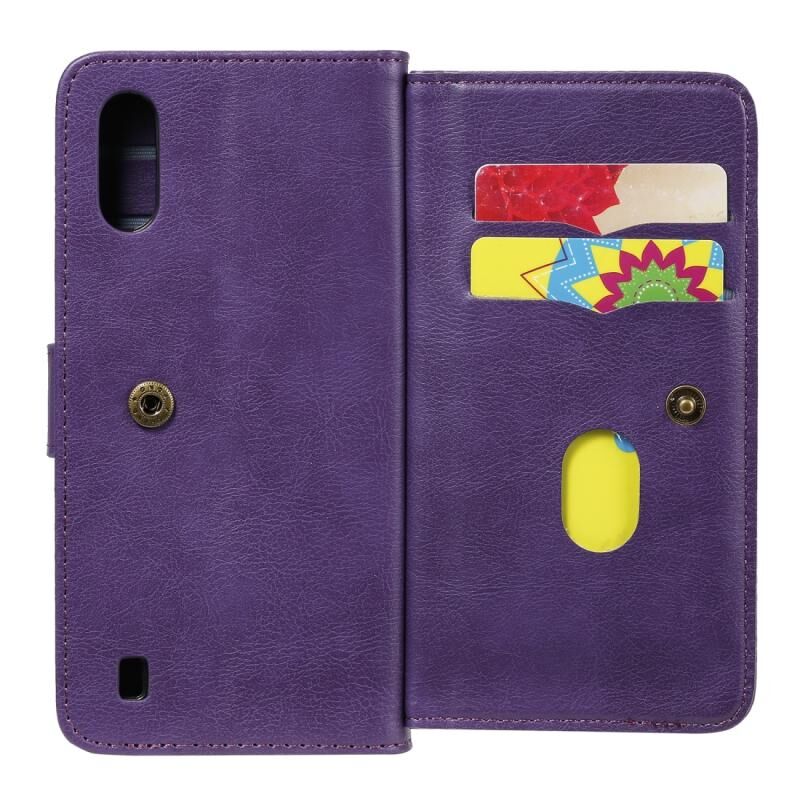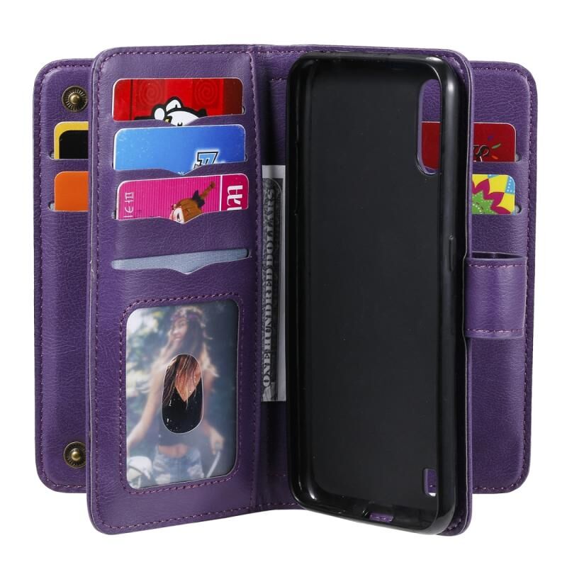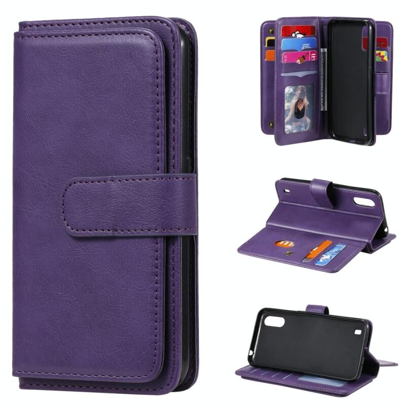 Για Samsung Galaxy A01 Πολυλειτουργική μαγνητική χάλκινη πόρπη οριζόντια Flip αμιγούς χρώματος δερμάτινη θήκη με 10 υποδοχές για κάρτες & πορτοφόλι & θήκη & κορνίζα φωτογραφιών (μωβ)