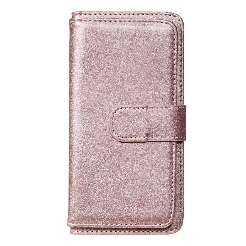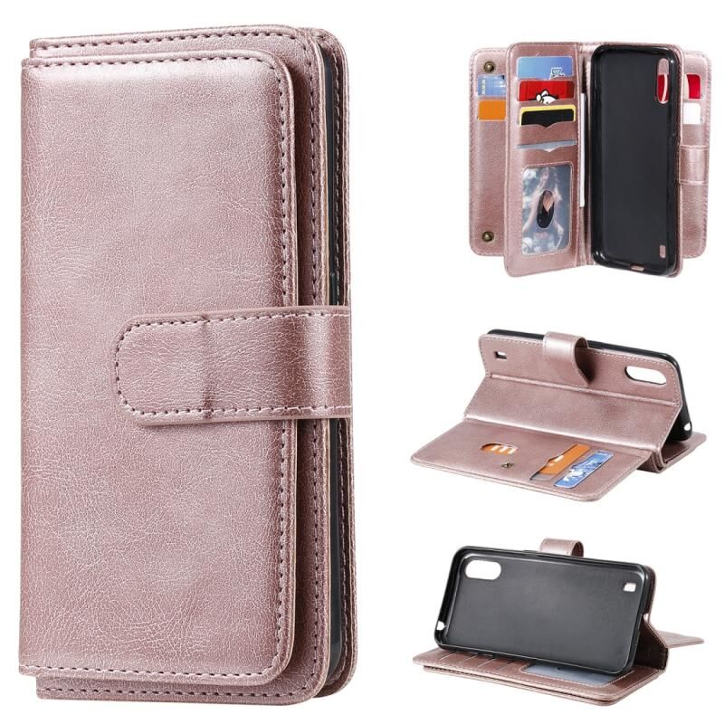 Για Samsung Galaxy A01 Πολυλειτουργική μαγνητική χάλκινη πόρπη οριζόντια Flip αμιγές χρώμα δερμάτινη θήκη με 10 υποδοχές για κάρτες & πορτοφόλι & κάτοχος & κορνίζα φωτογραφιών (ροζ χρυσό)