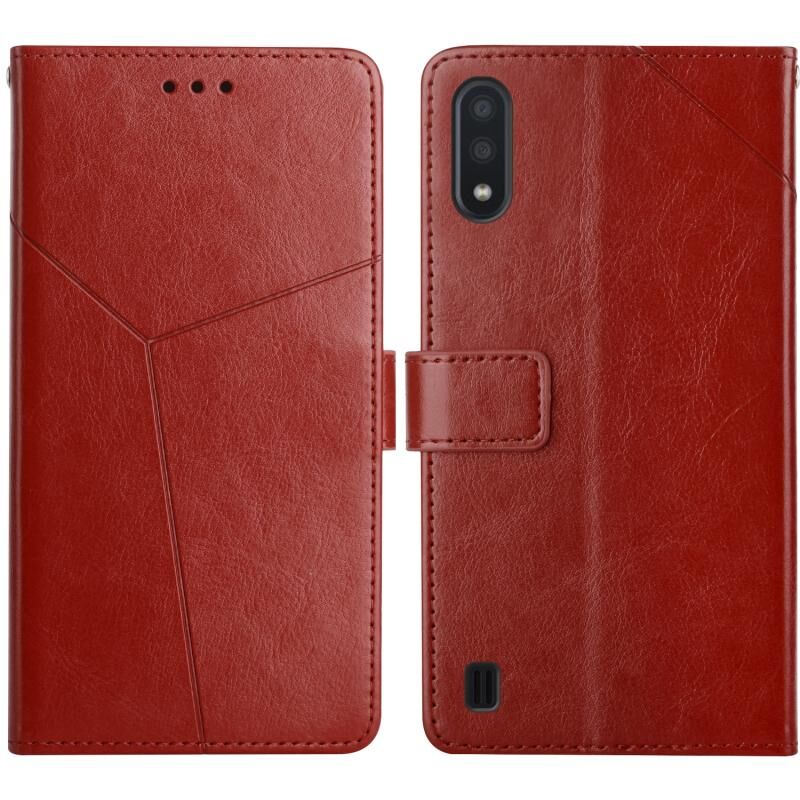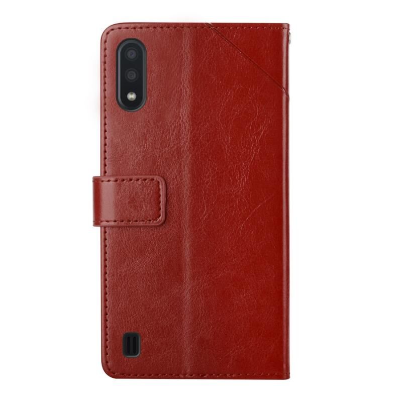 Για Samsung Galaxy A01 Y Stitching Οριζόντια Flip δερμάτινη θήκη με θήκη & υποδοχές για κάρτες & πορτοφόλι & κορνίζα φωτογραφιών (καφέ)