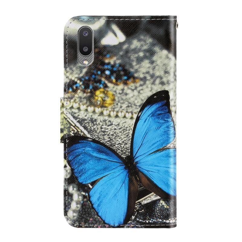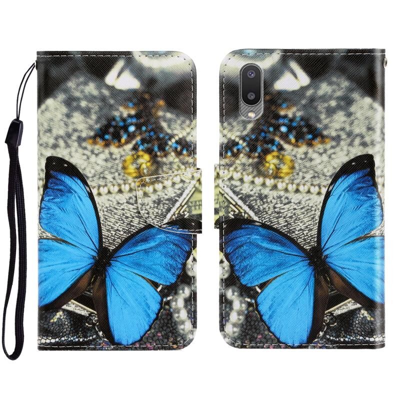 Θήκη τηλεφώνου Samsung Galaxy A02 3D με έγχρωμη σχεδίαση, οριζόντια αναδιπλούμενη από δέρμα με βάση στήριξης & θήκες για κάρτες & πορτοφόλι (Μια πεταλούδα)