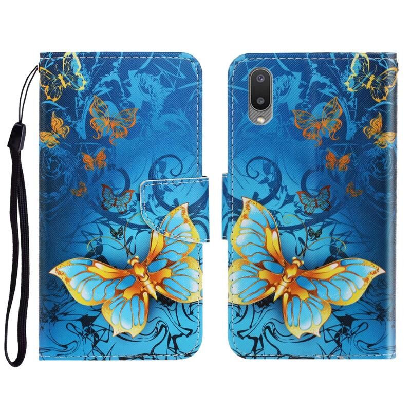 Θήκη τηλεφώνου Samsung Galaxy A02 3D με έγχρωμη σχεδίαση, οριζόντια αναδιπλούμενη από δέρμα με βάση στήριξης & υποδοχές καρτών & πορτοφόλι (Jade Butterfly)
