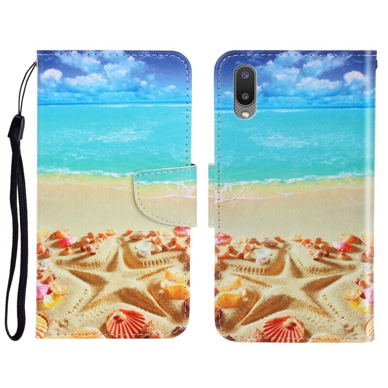 Θήκη τηλεφώνου Samsung Galaxy A02 3D με έγχρωμη σχεδίαση, οριζόντια αναδιπλούμενη από δέρμα με βάση στήριξης & υποδοχές καρτών & πορτοφόλι (Πεντάγραμμα)