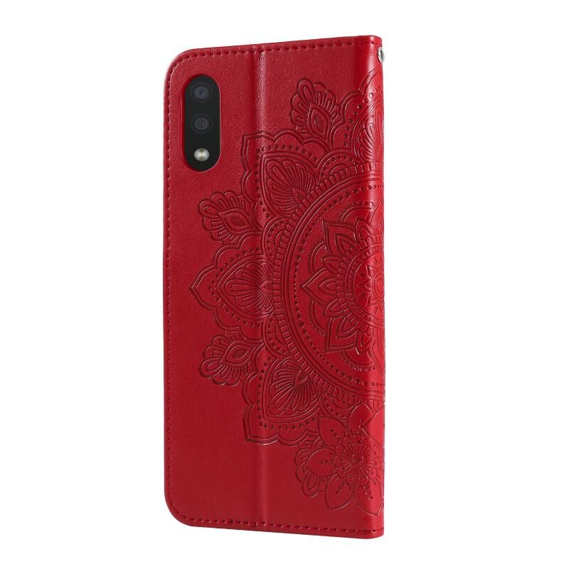 Για Samsung Galaxy A02 7-πέταλα λουλούδια ανάγλυφο μοτίβο οριζόντια Flip PU δέρμα υπόθεση με θήκη & υποδοχές για κάρτες & πορτοφόλι & πλαίσιο φωτογραφιών (κόκκινο)