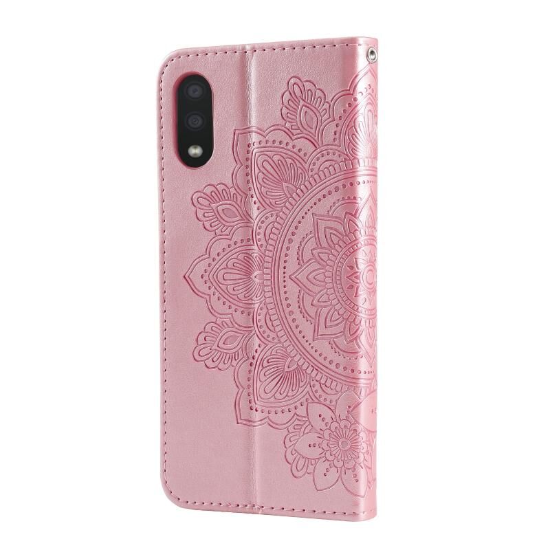 Για Samsung Galaxy A02 7-πέταλο λουλούδια ανάγλυφο μοτίβο οριζόντια Flip PU δέρμα υπόθεση με θήκη & υποδοχές για κάρτες & πορτοφόλι & κορνίζα φωτογραφιών (Ροζ χρυσός)