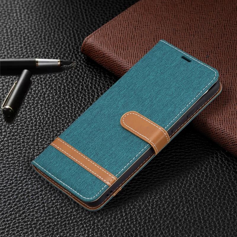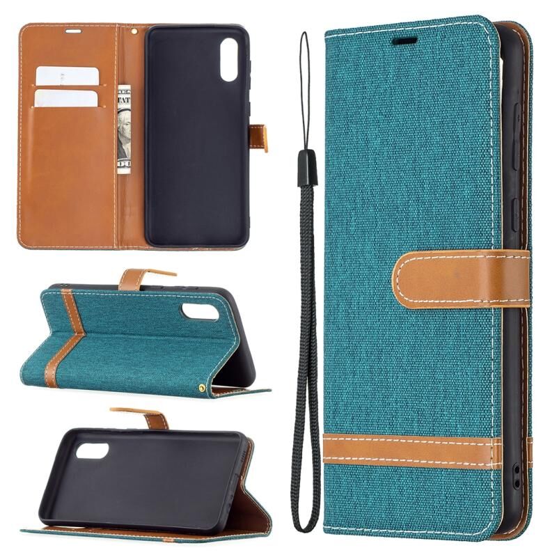 Για Samsung Galaxy A02 Χρώμα ταιριάζει με Denim υφή οριζόντια Flip δερμάτινη θήκη με θήκη & υποδοχές για κάρτες & πορτοφόλι & κορδόνι (πράσινο)