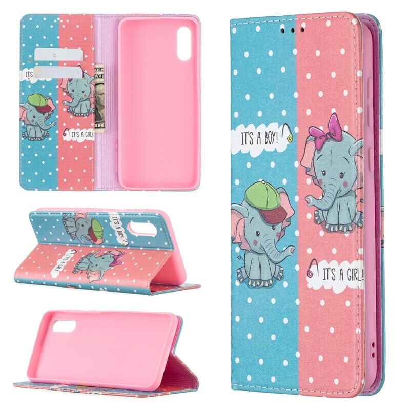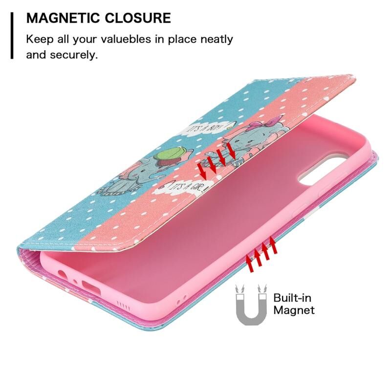Θήκη Samsung Galaxy A02 με πολύχρωμο σχέδιο, αόρατο μαγνητικό, οριζόντιο flip από δερματίνη PU με βάση & θήκες για κάρτες & πορτοφόλι (Ελέφαντας)