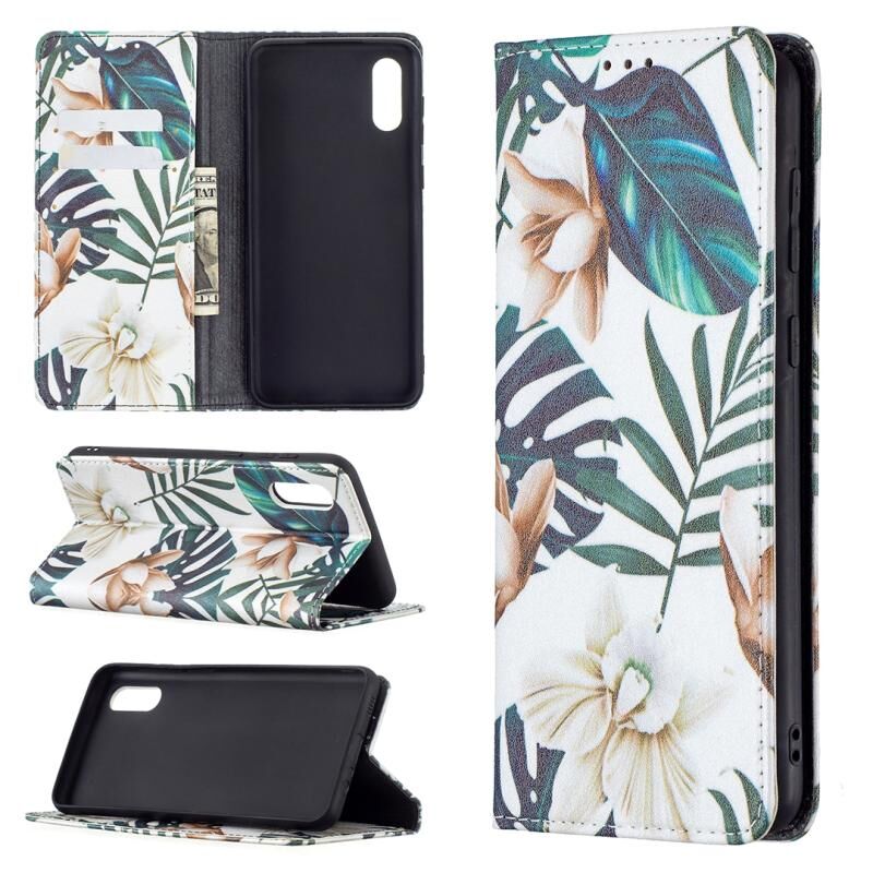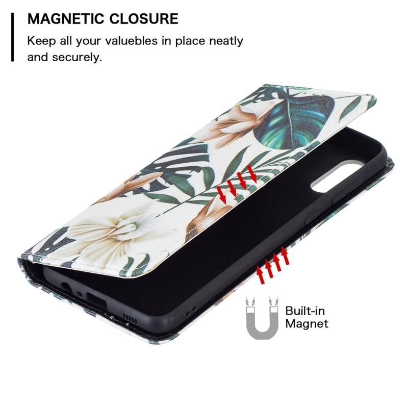 Θήκη Samsung Galaxy A02 με πολύχρωμο σχέδιο, αόρατο μαγνητικό, οριζόντιο flip από δερματίνη PU με βάση & θήκες για κάρτες & πορτοφόλι (Κόκκινα Φύλλα)