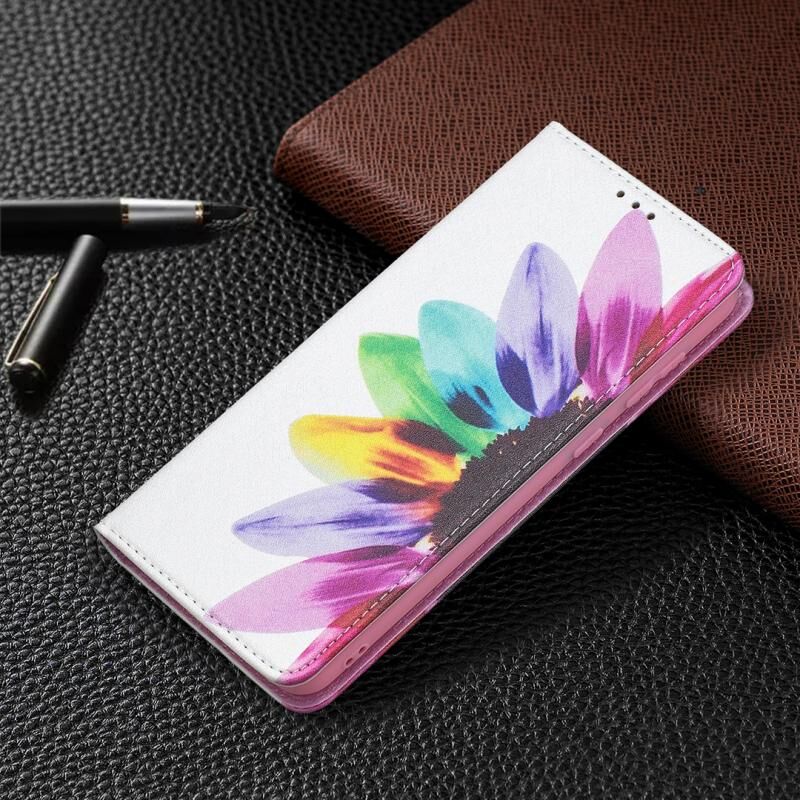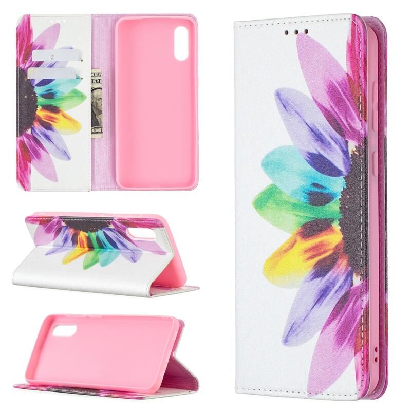 Θήκη Samsung Galaxy A02 με πολύχρωμο σχέδιο, αόρατο μαγνητικό, οριζόντιο flip από δερματίνη PU με βάση & θήκες για κάρτες & πορτοφόλι (Ηλίανθος)