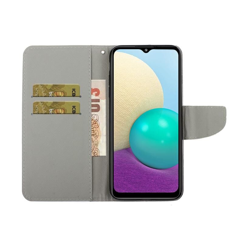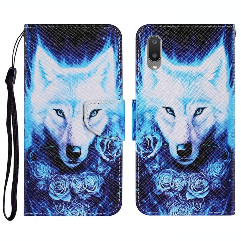 Θήκη Samsung Galaxy A02 με πολύχρωμο σχέδιο, οριζόντια αναδιπλούμενη από δερματίνη PU με βάση στήριξης, θήκες για κάρτες, πορτοφόλι & λουρί (Rose Wolf)