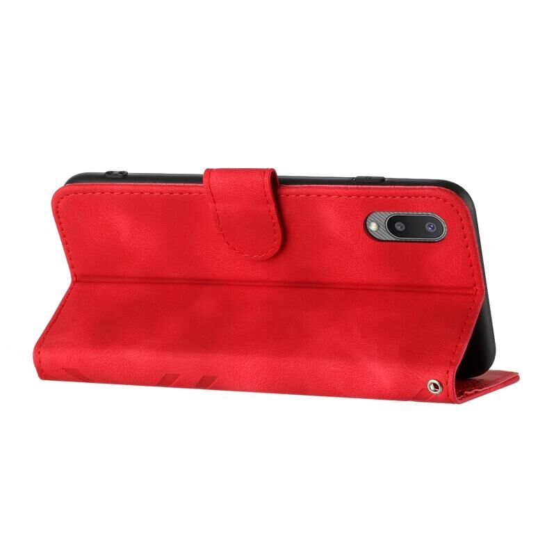 Για Samsung Galaxy A02 έκδοση ΕΕ Γραμμή μοτίβο δέρμα αίσθηση δέρμα τηλέφωνο υπόθεση (κόκκινο)