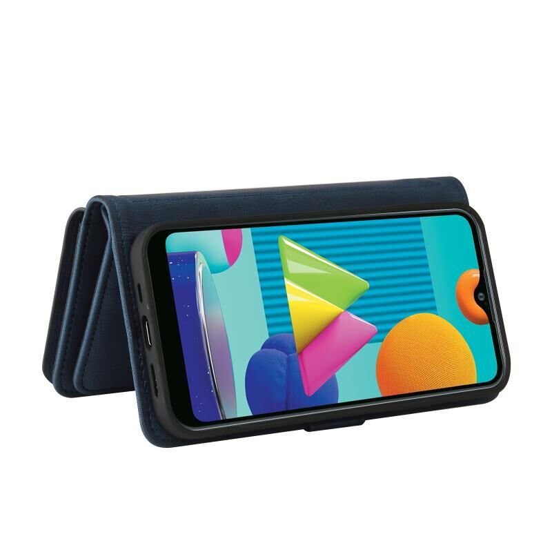 Για Samsung Galaxy A02 EU έκδοση δέρματος αίσθηση PU + TPU οριζόντια Flip δερμάτινη θήκη με κάτοχο & 15 κάρτες Slot & πορτοφόλι & φερμουάρ τσέπη & Lanyard (Μπλε)