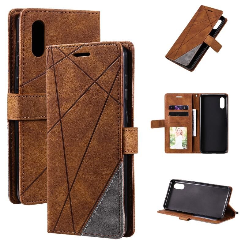 Για το Samsung Galaxy A02 (έκδοση ΕΕ) Skin Feel Splicing οριζόντια Flip δερμάτινη θήκη με θήκη & υποδοχές για κάρτες & πορτοφόλι & πλαίσιο φωτογραφιών (καφέ)