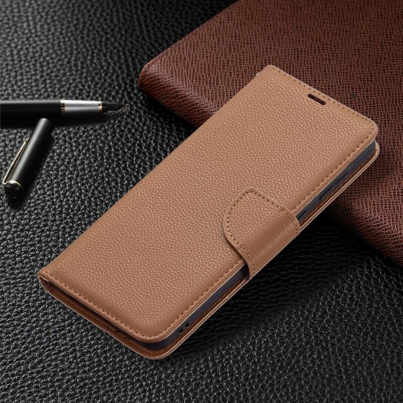 Για Samsung Galaxy A02 Litchi υφή καθαρό χρώμα οριζόντια Flip δερμάτινη θήκη με θήκη & υποδοχές για κάρτες & πορτοφόλι & κορδόνι (καφέ)