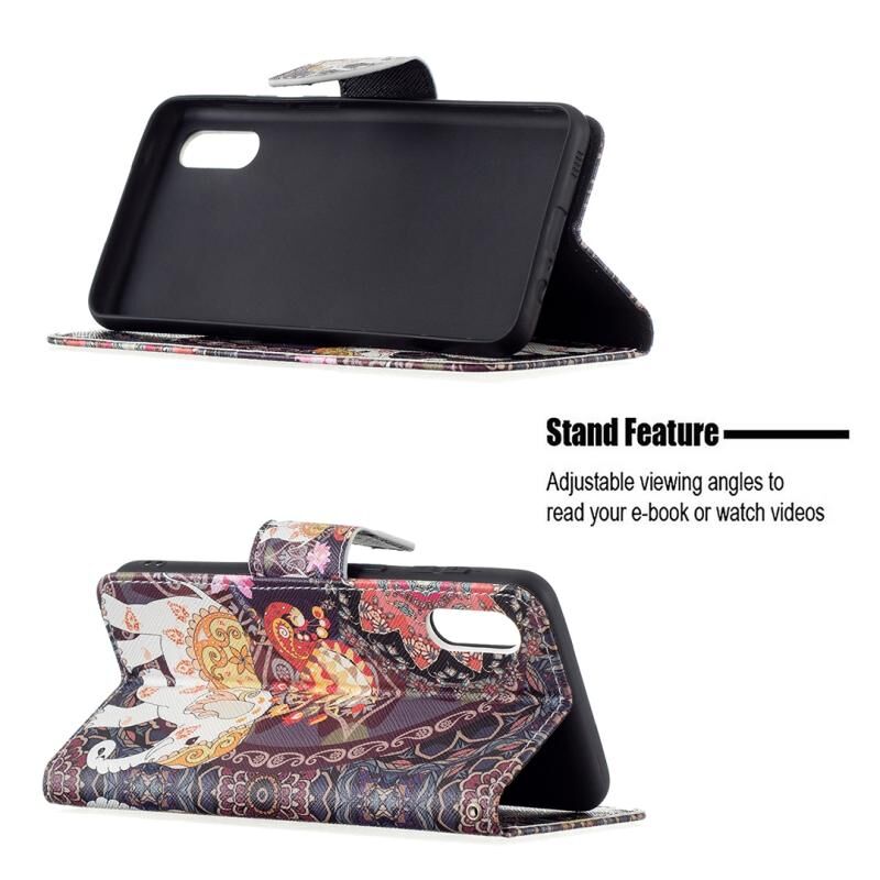 Θήκη δέρματος οριζόντιας αναδίπλωσης με σχέδια ζωγραφικής και χρώματα για Samsung Galaxy A02 / M02 με βάση στήριξης & υποδοχές καρτών & πορτοφόλι (Λουλούδια Ελέφαντας)