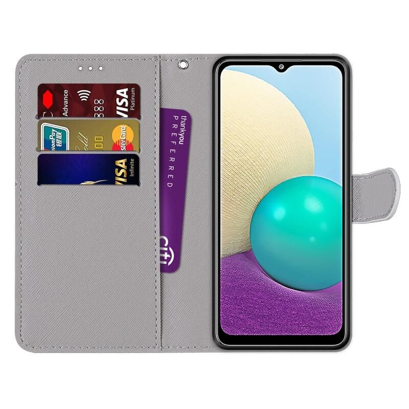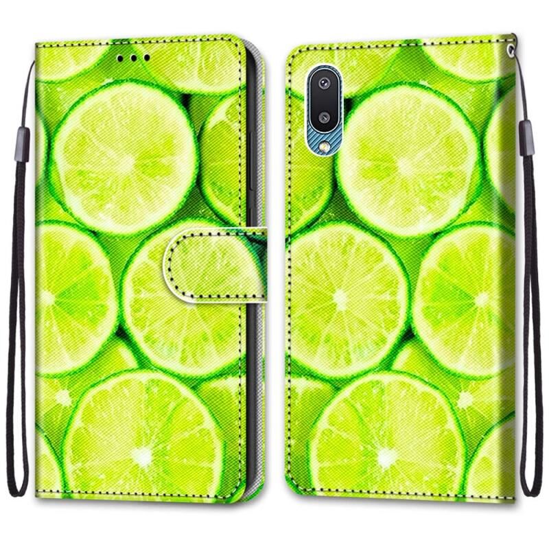 Θήκη για Samsung Galaxy A02 / M02 με πολύχρωμο σχέδιο, υφή σταυρού, οριζόντια, από δερματίνη PU με βάση στήριξης & θήκες για κάρτες & πορτοφόλι & κορδόνι (Πράσινο Λεμόνι)