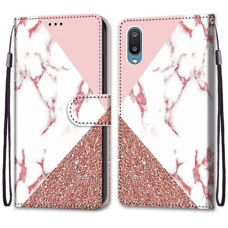 Θήκη για Samsung Galaxy A02 / M02 με πολύχρωμο σχέδιο, υφή σταυρού, οριζόντια, από δερματίνη PU με βάση στήριξης & θήκες για κάρτες & πορτοφόλι & κορδόνι (Πράσινο Λεμόνι)