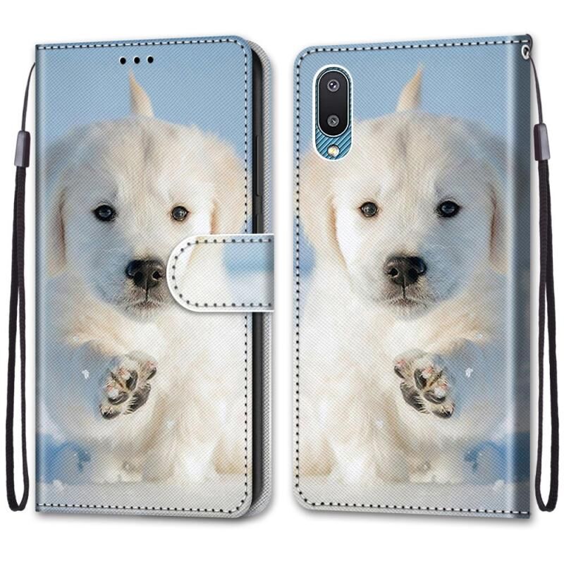 Θήκη για Samsung Galaxy A02 / M02 με πολύχρωμο σχέδιο, υφή σταυρού, οριζόντια, από δερματίνη PU με βάση στήριξης & θήκες για κάρτες & πορτοφόλι & κορδόνι (Snow Puppy)
