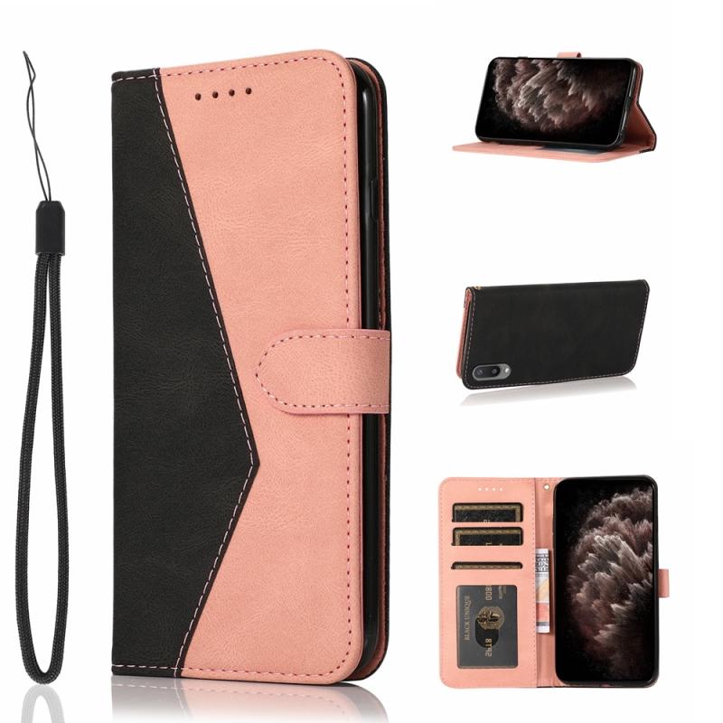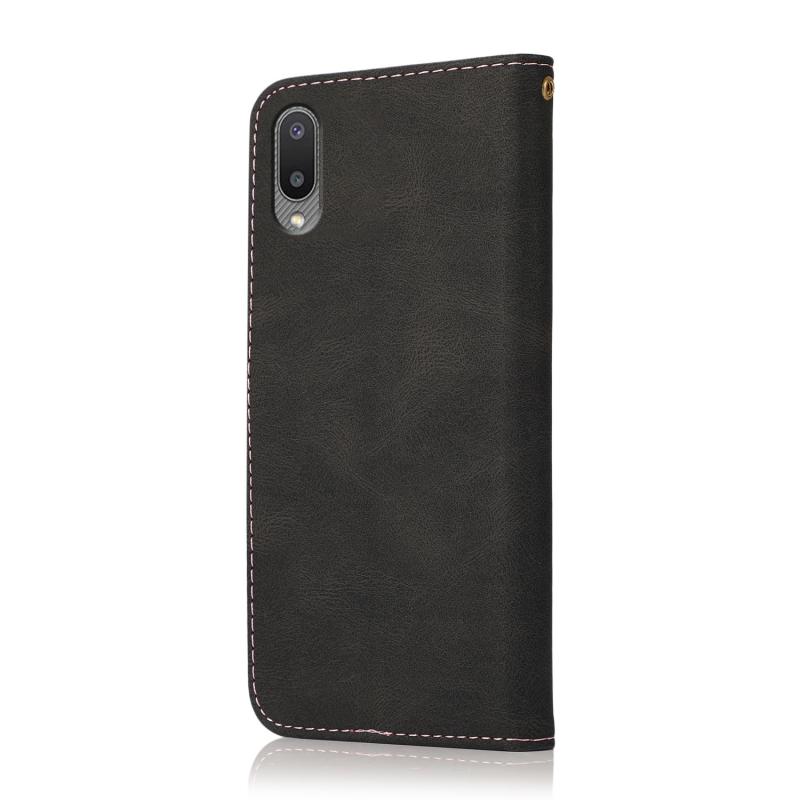 Θήκη τηλεφώνου από δέρμα με διχρωμία ραφής για Samsung Galaxy A02 / M02 (Μαύρο Ροζ Χρυσό)