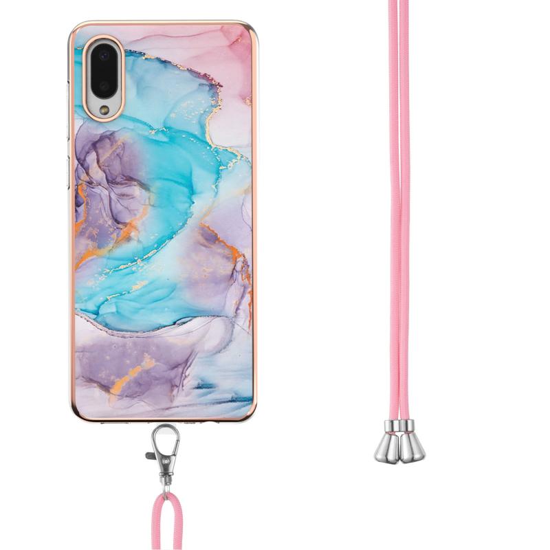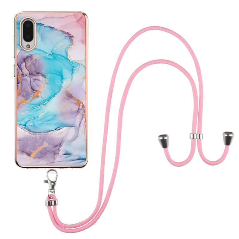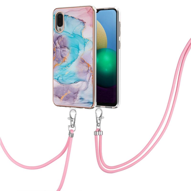 For Samsung Galaxy A02/M02 Electroplating Pattern IMD TPU Shockproof Case with Neck Lanyard(Milky Way Blue Marble)