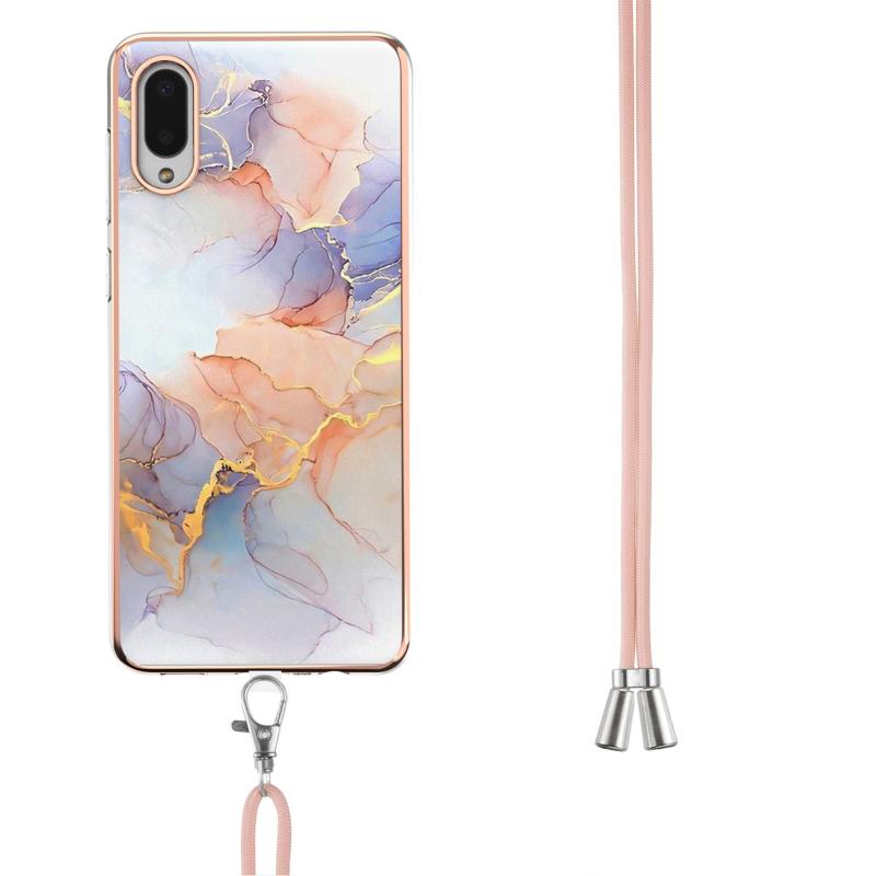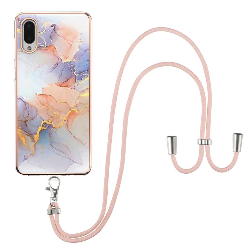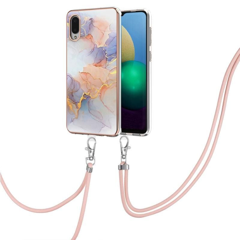 For Samsung Galaxy A02/M02 Electroplating Pattern IMD TPU Shockproof Case with Neck Lanyard(Milky Way White Marble)