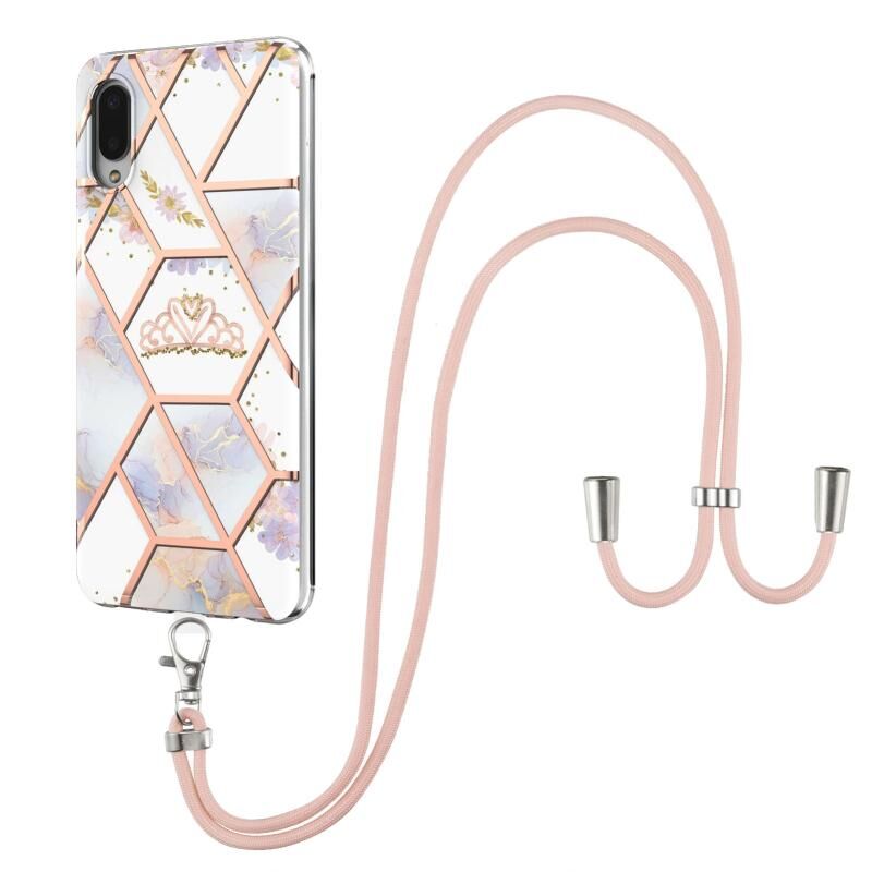 Θήκη προστασίας TPU με ενσωματωμένο κορδόνι (Imperial Crown) για Samsung Galaxy A02 / M02 με γαλβανισμό, συνδυασμό χρωμάτων και σχέδιο μαρμάρου με λουλούδια, ανθεκτική σε κρούσεις.