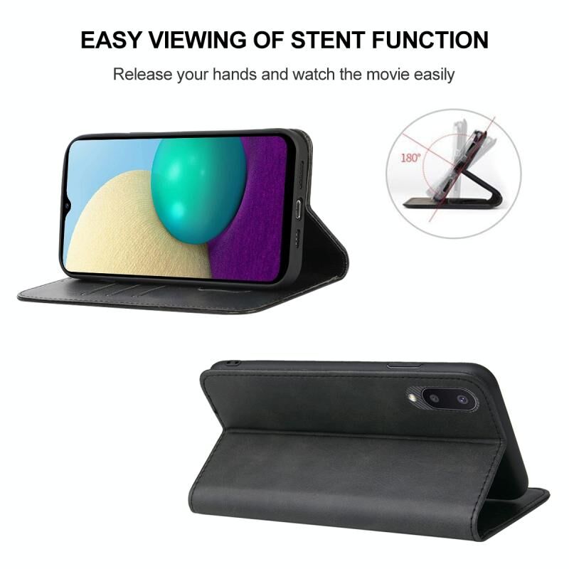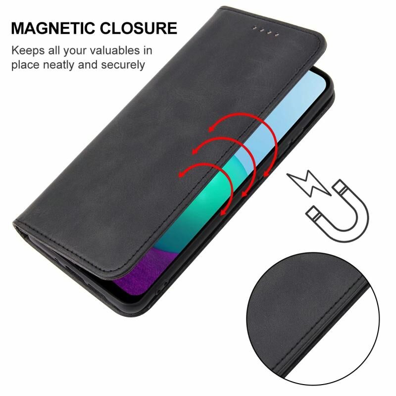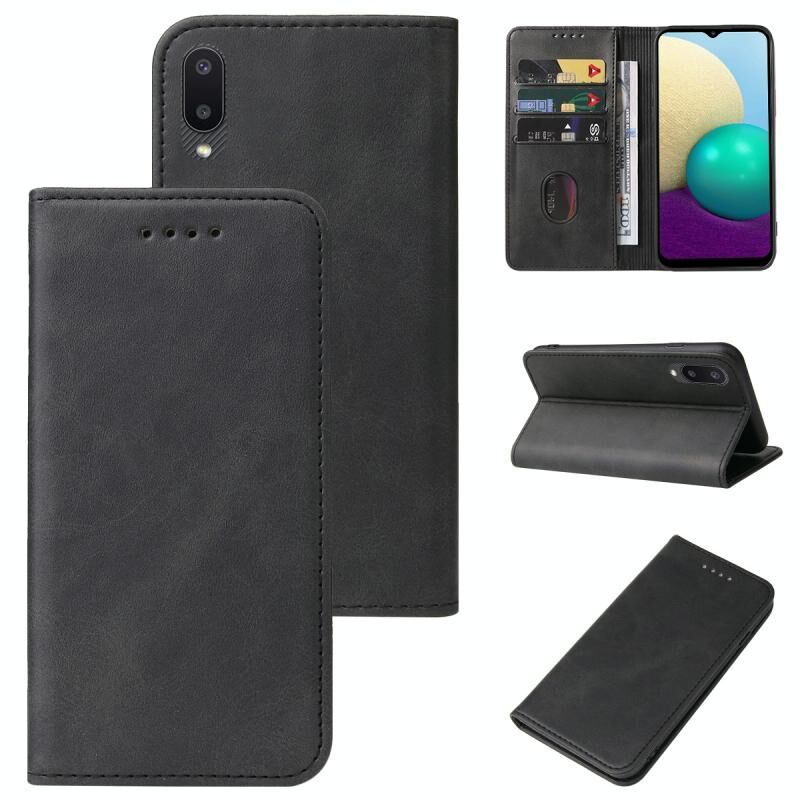 Για Samsung Galaxy A02 / M02 Μαγνητικό κλείσιμο δερμάτινη θήκη τηλεφώνου (Μαύρο)